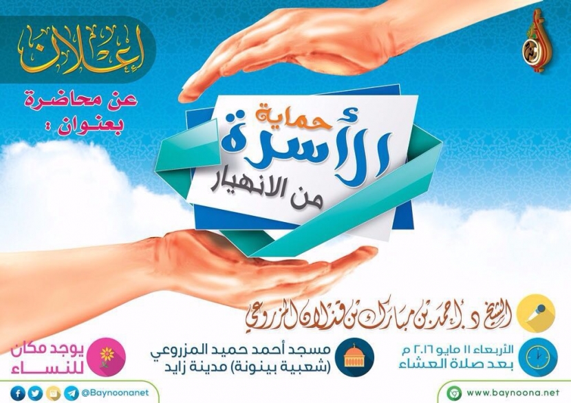 محاضرة: حماية الأسرة من الانهيار تاريخ الإضافة: الخميس, 12/05/2016 - 18:49 التصنيفات الشيخ: د. أحمد بن مبارك المزروعي