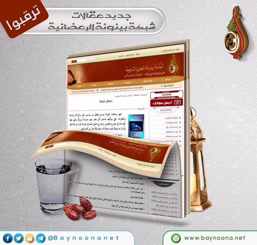 ترقبوا: جديد مقالات شبكة بينونة الرمضانية تاريخ الإضافة: الأربعاء, 25/05/2016 - 21:30 التصنيفات الشيخ: مجموعة من المشايخ