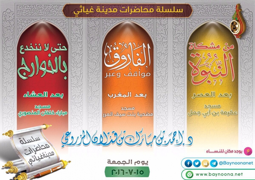سلسلة محاضرات مدينة غياثي تاريخ الإضافة: الخميس, 14/07/2016 - 17:25 التصنيفات الشيخ: د. أحمد بن مبارك المزروعي
