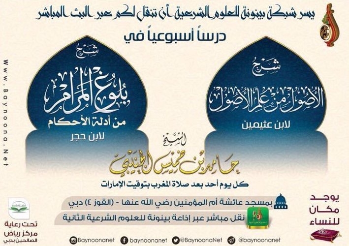 شرح الأصول من علم الأصول / بلوغ المرام من أدلة الأحكام تاريخ الإضافة: الأحد, 18/09/2016 - 13:25 التصنيفات الشيخ: حامد بن خميس الجنيبي