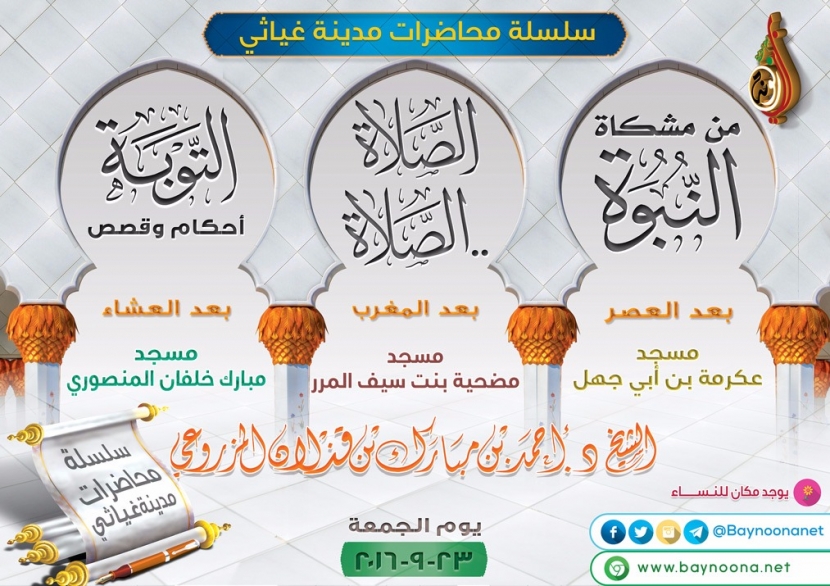 سلسلة محاضرات مدينة غياثي تاريخ الإضافة: الجمعة, 23/09/2016 - 00:59 التصنيفات الشيخ: د. أحمد بن مبارك المزروعي