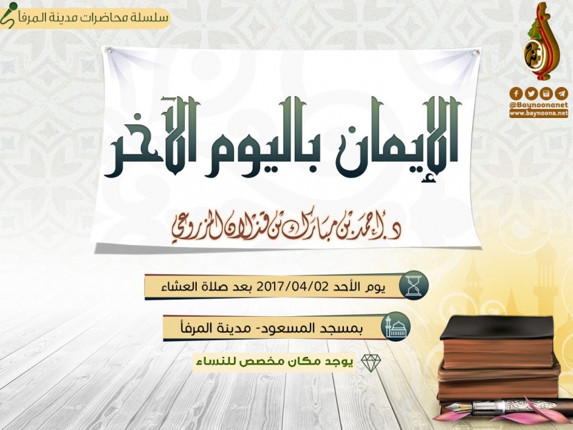 محاضر بعنوان: الإيمان باليوم الآخر تاريخ الإضافة: الأحد, 02/04/2017 - 12:36 التصنيفات الشيخ: د. أحمد بن مبارك المزروعي