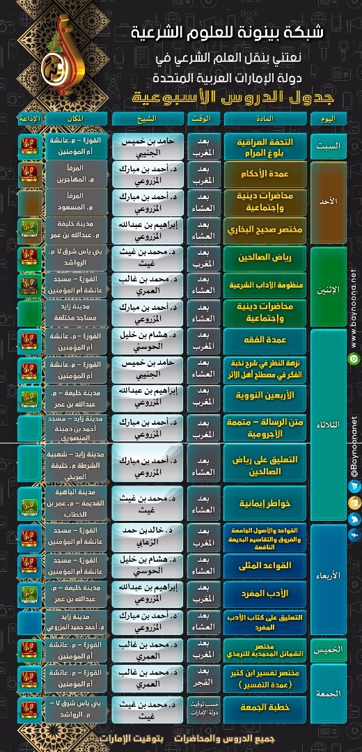 جدول الدروس الأسبوعية