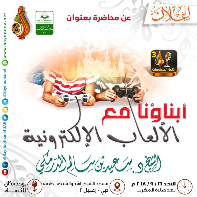 محاضرة بعنوان: أبناؤنا مع الألعاب الإلكترونية تاريخ الإضافة: السبت, 15/09/2018 - 00:14 التصنيفات الشيخ: د. سعيد بن سالم الدرمكي