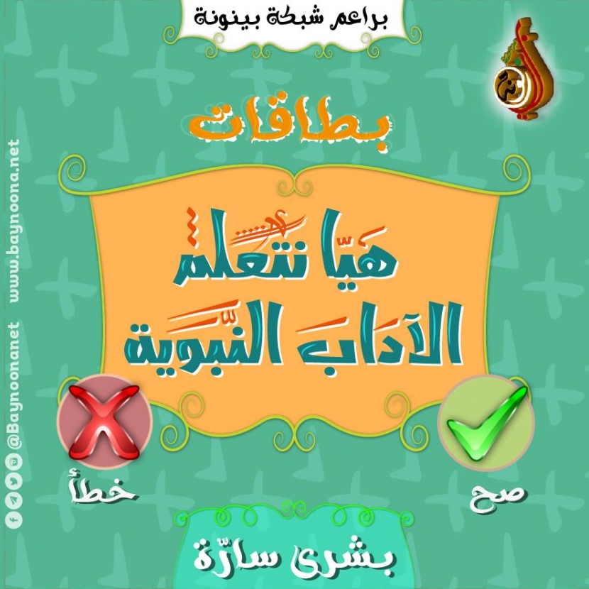 قريبا إن شاء الله: سلسلة بطاقات هيا نتعلم الآداب النبوية تاريخ الإضافة: السبت, 10/11/2018 - 15:55 التصنيفات الشيخ: من إعداد شبكة بينونة