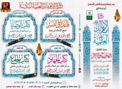 نشاطات الشبكة الشيخ - الكل -أ.د. ترحيب بن ربيعان الدوسريأحمد بن محمد الشحيأسامة بن سعود العمريإبراهيم بن عبد الله المزروعيحامد بن خميس الجنيبي د. أحمد بن مبارك المزروعيد. خالد بن حمد الزعابيد. خالد بن ضحوي الظفيريد. سعيد بن سالم الدرمكيد. عبدالرحمن بن سلمان الحماديد. علي بن سلمان الحماديد. محمد بن غالب العمريد. محمد بن غيث غيثد. هشام بن خليل الحوسنيسليمان بن سليم الله الرحيليعبدالرحمن بن عوف كونيعبدالله بن صلفيق الظفيريعبدالله بن عبدالرحيم البخاريعبدالله بن محمد النجميعيسى بن حمد الشامسيمجموعة من المشايخمحمد بن عمر بازموليوسف بن حسن الحمادي إعداد - الكل -من إعداد شبكة بينونة ابحث تمت بحمد الله: دورة الإمام مالك... قريبا إن شاء الله: سلسلة بطاقات... محاضرة بعنوان: لا يستطاع العلم... قريبا إن شاء الله: سلسلة أخطاء... جدول الدروس الأسبوعية جدول الدروس المسجلة التي ستبث عبر... جدول الدروس المسجلة التي ستبث عبر... خطبة الجمعة، للشيخ عيسى بن حمد... خطبة الجمعة، للشيخ د. عبدالرحمن... الندوة الافتتاحية لدورة الإمام... دورة الإمام مالك العلمية السادسة قريبا إن شاء الله: سلسلة صفة... محاضرة بعنوان: من أبواب الفتن قريبا إن شاء الله: سلسلة مختصرات... درس في الإيمان: تعليق على منظومة... الأولى الأخيرة السابقة ... 92 93 129 95 96 من 129 التالية الأخيرة