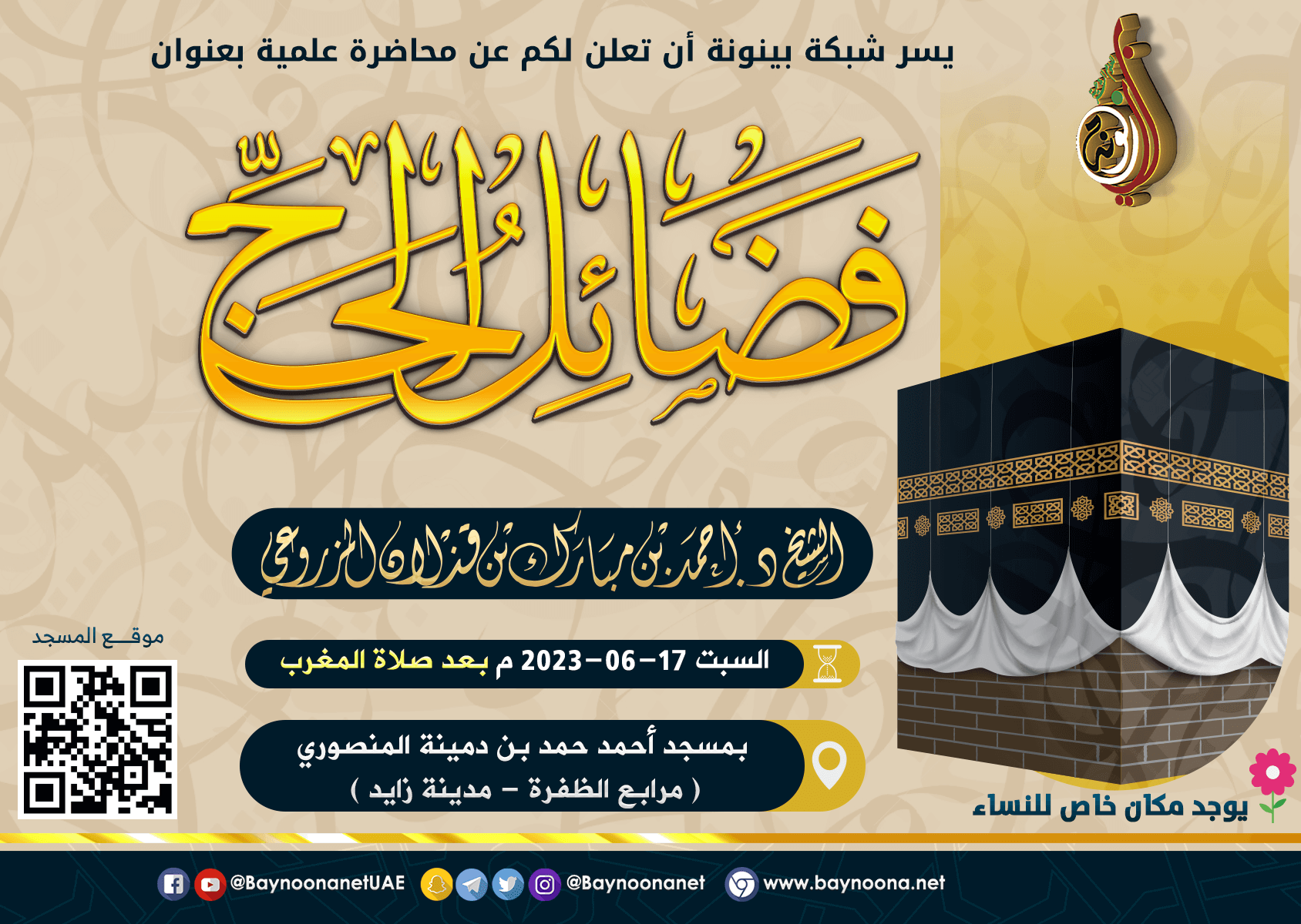 محاضرة علمية: فضائل الحج تاريخ الإضافة: الخميس, 15/06/2023 - 22:12 التصنيفات الشيخ: د. أحمد بن مبارك المزروعي