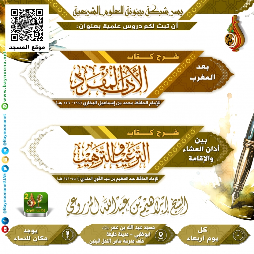 دروس الشيخ إبراهيم المزروعي ليوم الأربعاء تاريخ الإضافة: الأربعاء, 06/12/2023 - 14:45 التصنيفات الشيخ: إبراهيم بن عبد الله المزروعي