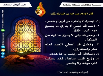 بطاقات دعوية صنف البطاقة - الكل -ألفاظ منهي عنهاإصدارات مشايخ الإماراتإيمانياتالأخلاق والآدابالأدعية والأذكارالتحذير من المعاصيالحج والعمرةالرقية الشرعيةالسيرة النبويةالطب النبويالعباداتالقرآنبر الوالدينركن الأسرةرمضانياتطاعة ولي الأمرطلب العلمعامةمكافحة الإرهابمن آثار السلفمن أقوال حكام الإمارات الشيخ - الكل -أحمد بن محمد الشحيإبراهيم بن عبد الله المزروعيحامد بن خميس الجنيبي د. أحمد بن مبارك المزروعيد. خالد بن حمد الزعابيد. سعيد بن سالم الدرمكيد. عبدالرحمن بن سلمان الحماديد. علي بن سلمان الحماديد. محمد بن غالب العمريد. محمد بن غيث غيثد. هشام بن خليل الحوسنييوسف بن حسن الحمادي إعداد - الكل -من إعداد شبكة بينونة السلسلة - الكل -أحاديث عن الاستسقاءأحكام التجويدأحكام الصيامأحكام الكسوفأحكام تخص النساءأختي هل تعلمين؟أخطاء شائعة على ألسنة الناسأخلاقُ الطفل المسلمأدعية نبوية جامعةأذكار العمرة والحجأسئلة أجاب عنها النبي ﷺأسس العقيدة الإسلاميةأشراط الساعةأصول ومهمات في توحيد رب البرياتأقوال الأئمة الأعلام في اتباع سنة خير الأنامأما آن لك أن تتوبأنا الفتاة المسلمةأهلا رمضانأوقات استجابة الدعاءأي الذنب أعظمإتحاف البارين بحقوق الوالدينإتحاف الكرام بمنازل دار السلامإتحاف المنيب الأواه بمن يظلهم اللهإرشاد الخلق إلى مفاتيح الرزقإسعاد الصبيان بخمسين حديثا اتفق عليها الشيخانإكرام رب العالمين لعباده الصائمينإنّ من الشعر لحكمةإياكم والمسكراتاحذروا العلمانية يا شباب الإسلاماحذروا كبائر الذنوب يا شباب الإسلامالأذكار النبوية اليومية لأشبال الإسلامالأزهار الندية في الحياة الزوجيةالابتهاج بثواب الحاجالباقيات الصالحاتالبشارة بالإستعاذات النبويةالتبيان لأعمال البر في رمضانالجوهر الثمين بفضائل أمهات المؤمنين - رضي الله عنهن -الحج أسراره وفضائله وآدابهالحج وأقسامهالحقوق الواجبة على أشبال الإسلامالحياة البهية مع الوصايا النبويةالدر والماس في قضاء حوائج الناسالدرة البهية في الأخلاق الزكيةالدروس العقدية الإسلامية المختصرة لعامة الأمةالدروس المختصرة في الصلاةالدروس المختصرة في الطهارة لعامة الأمةالدروس المستفادة من الحجالدعاء في الحجالرسائل التعليمية لبراعم الإسلام - الأذكار النبوية لبراعم الإسلام - السيرة النبوية لبراعم الإسلام - الصلاة لبراعم الإسلام - العقيدة لبراعم الإسلامالرسائل العلمية لشباب الأمة الإسلاميةالرقية الشرعيةالروضة الندية في خصائص الأمة المحمديةالزكاة لأشبال الإسلامالسمع والطاعة ولزوم الجماعةالسيرة النبوية لأشبال الإسلامالصدقة برهانالطهارة للأطفالالعقيدة لأشبال الإسلامالعقيدة لبراعم الإسلامالغيبة وعواقبها الوخيمة في الدنيا والآخرةالقناعة بموجبات الشفاعةالقول الفاخر في أحاديث الإيمان بالله واليوم الآخراللؤلؤة الثمينة في أحكام اللباس والزينةالمؤمن القويالمرأة المسلمة في الحجالمغنم بفضائل شهر الله المحرّمالمناهي الشرعيةالمناهي الشركيةالمهلكات في الدنيا والآخرة الوصايا الشرعية للحياة الزوجيةبشائر بفضل الحب في اللهبلوغ المنى بمعاني الأسماء الحسنىتأملت في أمرتبصير الفضلاء بعظم أجر البلاءتحذير أشبال الإسلام من خطر الثورات والخروج على الحكام (سؤال وجواب)تحذير الفتى من مخاطر الرباتحذير الكريم من الخلق الذميمتحذير اللبيب من شؤم الذنوبتذكير العباد بحال النبي ﷺ مع الأولادتذكير الكرام بهدي النبي ﷺ مع أصحابه الكرامتذكير المسلمين بسنن خير المرسلينتربية الأبناء تعظيم الأئمة للصحابة ـ رضي الله عنهم ـتفريج الكروب بمكفرات الذنوبتفسير قصار المفصل لأشبال الإسلام وشبابهتقويم شهر رمضان المبارك (١٤٤٠هـ)تمام المنة في بيوت الجنةثلاث فاحفظهاجدول مختصر في أهم أحداث سيرة خير البشرحال السلف مع الصلاةحث الكرام على صلة الوالدين والأرحامحج التمتعحرز أهل الإسلام من كل وباء عامحلية أهل الإيمان بأوصاف القرآنخواطر من 