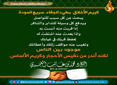 بطاقات دعوية صنف البطاقة - الكل -ألفاظ منهي عنهاإصدارات مشايخ الإماراتإيمانياتالأخلاق والآدابالأدعية والأذكارالتحذير من المعاصيالحج والعمرةالرقية الشرعيةالسيرة النبويةالطب النبويالعباداتالقرآنبر الوالدينركن الأسرةرمضانياتطاعة ولي الأمرطلب العلمعامةمكافحة الإرهابمن آثار السلفمن أقوال حكام الإمارات الشيخ - الكل -أحمد بن محمد الشحيإبراهيم بن عبد الله المزروعيحامد بن خميس الجنيبي د. أحمد بن مبارك المزروعيد. خالد بن حمد الزعابيد. سعيد بن سالم الدرمكيد. عبدالرحمن بن سلمان الحماديد. علي بن سلمان الحماديد. محمد بن غالب العمريد. محمد بن غيث غيثد. هشام بن خليل الحوسنييوسف بن حسن الحمادي إعداد - الكل -من إعداد شبكة بينونة السلسلة - الكل -أحاديث عن الاستسقاءأحكام التجويدأحكام الصيامأحكام الكسوفأحكام تخص النساءأختي هل تعلمين؟أخطاء شائعة على ألسنة الناسأخلاقُ الطفل المسلمأدعية نبوية جامعةأذكار العمرة والحجأسئلة أجاب عنها النبي ﷺأسس العقيدة الإسلاميةأشراط الساعةأصول ومهمات في توحيد رب البرياتأقوال الأئمة الأعلام في اتباع سنة خير الأنامأما آن لك أن تتوبأنا الفتاة المسلمةأهلا رمضانأوقات استجابة الدعاءأي الذنب أعظمإتحاف البارين بحقوق الوالدينإتحاف الكرام بمنازل دار السلامإتحاف المنيب الأواه بمن يظلهم اللهإرشاد الخلق إلى مفاتيح الرزقإسعاد الصبيان بخمسين حديثا اتفق عليها الشيخانإكرام رب العالمين لعباده الصائمينإنّ من الشعر لحكمةإياكم والمسكراتاحذروا العلمانية يا شباب الإسلاماحذروا كبائر الذنوب يا شباب الإسلامالأذكار النبوية اليومية لأشبال الإسلامالأزهار الندية في الحياة الزوجيةالابتهاج بثواب الحاجالباقيات الصالحاتالبشارة بالإستعاذات النبويةالتبيان لأعمال البر في رمضانالجوهر الثمين بفضائل أمهات المؤمنين - رضي الله عنهن -الحج أسراره وفضائله وآدابهالحج وأقسامهالحقوق الواجبة على أشبال الإسلامالحياة البهية مع الوصايا النبويةالدر والماس في قضاء حوائج الناسالدرة البهية في الأخلاق الزكيةالدروس العقدية الإسلامية المختصرة لعامة الأمةالدروس المختصرة في الصلاةالدروس المختصرة في الطهارة لعامة الأمةالدروس المستفادة من الحجالدعاء في الحجالرسائل التعليمية لبراعم الإسلام - الأذكار النبوية لبراعم الإسلام - السيرة النبوية لبراعم الإسلام - الصلاة لبراعم الإسلام - العقيدة لبراعم الإسلامالرسائل العلمية لشباب الأمة الإسلاميةالرقية الشرعيةالروضة الندية في خصائص الأمة المحمديةالزكاة لأشبال الإسلامالسمع والطاعة ولزوم الجماعةالسيرة النبوية لأشبال الإسلامالصدقة برهانالطهارة للأطفالالعقيدة لأشبال الإسلامالعقيدة لبراعم الإسلامالغيبة وعواقبها الوخيمة في الدنيا والآخرةالقناعة بموجبات الشفاعةالقول الفاخر في أحاديث الإيمان بالله واليوم الآخراللؤلؤة الثمينة في أحكام اللباس والزينةالمؤمن القويالمرأة المسلمة في الحجالمغنم بفضائل شهر الله المحرّمالمناهي الشرعيةالمناهي الشركيةالمهلكات في الدنيا والآخرة الوصايا الشرعية للحياة الزوجيةبشائر بفضل الحب في اللهبلوغ المنى بمعاني الأسماء الحسنىتأملت في أمرتبصير الفضلاء بعظم أجر البلاءتحذير أشبال الإسلام من خطر الثورات والخروج على الحكام (سؤال وجواب)تحذير الفتى من مخاطر الرباتحذير الكريم من الخلق الذميمتحذير اللبيب من شؤم الذنوبتذكير العباد بحال النبي ﷺ مع الأولادتذكير الكرام بهدي النبي ﷺ مع أصحابه الكرامتذكير المسلمين بسنن خير المرسلينتربية الأبناء تعظيم الأئمة للصحابة ـ رضي الله عنهم ـتفريج الكروب بمكفرات الذنوبتفسير قصار المفصل لأشبال الإسلام وشبابهتقويم شهر رمضان المبارك (١٤٤٠هـ)تمام المنة في بيوت الجنةثلاث فاحفظهاجدول مختصر في أهم أحداث سيرة خير البشرحال السلف مع الصلاةحث الكرام على صلة الوالدين والأرحامحج التمتعحرز أهل الإسلام من كل وباء عامحلية أهل الإيمان بأوصاف القرآنخواطر من 