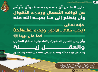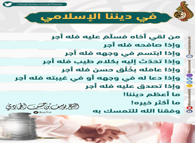 تغريدات واقتباسات الشيخ - الكل -أحمد بن محمد الشحيإبراهيم بن عبد الله المزروعيحامد بن خميس الجنيبي د. أحمد بن مبارك المزروعيد. خالد بن حمد الزعابيد. سعيد بن سالم الدرمكيد. عبدالرحمن بن سلمان الحماديد. علي بن سلمان الحماديد. محمد بن غالب العمريد. محمد بن غيث غيثد. هشام بن خليل الحوسنييوسف بن حسن الحمادي السلسلة - الكل -الطلاق ليس حلامن قواعد الدينمن معين زايد الخيرنحو أسرة سعيدة ابحث التزود من العلم النافع لكل من الزوجين واجبات وحقوق... ومن الأمور المهمة التي ينبغي الحرص... من التغيير الإيجابي الذي يحرص عليه... فتقوى الله هي سبب السعادة والنجاة... في الأزمات أكثر ما يضر الناس هو... من معين زايد الخير - (53) من دعاء... من أعمل هذه القاعدة النبوية... قال رسول الله ﷺ: ( كل كلمة طيبة... سياسة النفس على العاقل أن يسمو بنفسه وأن يترفع... في ديننا الإسلامي ... من معين زايد الخير - (52) ما... من نعم الله علينا في هذا الزمن... من أراد أن يكشف أخلاق من حوله... الأولى الأخيرة السابقة 1 79 3 4 5 من 79 التالية الأخيرة
