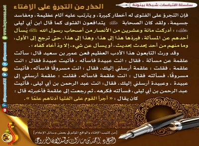 تغريدات واقتباسات الشيخ - الكل -أحمد بن محمد الشحيإبراهيم بن عبد الله المزروعيحامد بن خميس الجنيبي د. أحمد بن مبارك المزروعيد. خالد بن حمد الزعابيد. سعيد بن سالم الدرمكيد. عبدالرحمن بن سلمان الحماديد. علي بن سلمان الحماديد. محمد بن غالب العمريد. محمد بن غيث غيثد. هشام بن خليل الحوسنييوسف بن حسن الحمادي السلسلة - الكل -الطلاق ليس حلامن قواعد الدينمن معين زايد الخيرنحو أسرة سعيدة ابحث عجبا لمن تجرأ في هذا الزمان الحذر من التجرؤ على الإفتاء راحة المرء وسعادته تكمن في مدى... لأهل التوحيد منزلة عظيمة ليست... من فضائل الإخلاص وثماره أنت في هذه الدنيا في مرحلة مؤقتة... ثق تماما أنك كلما عمرت باطنك... أعظم أسباب الإخلاص وتحقيقه ... إذا أصبحت وأنت مستقيم في هذه... كلمة في الإخلاص رسالة إلى طالب العلم: إذا أردت أن... احرص على مجالسة من يدعوك إلى خير... أهل السنة: أعلم الناس بالحق ،... من أحب ان تعظم مهابة الله في قلبه... توضيح الأمور لمن يسيء الظن بك ... الأولى الأخيرة السابقة ... 11 12 79 14 15 من 79 التالية الأخيرة