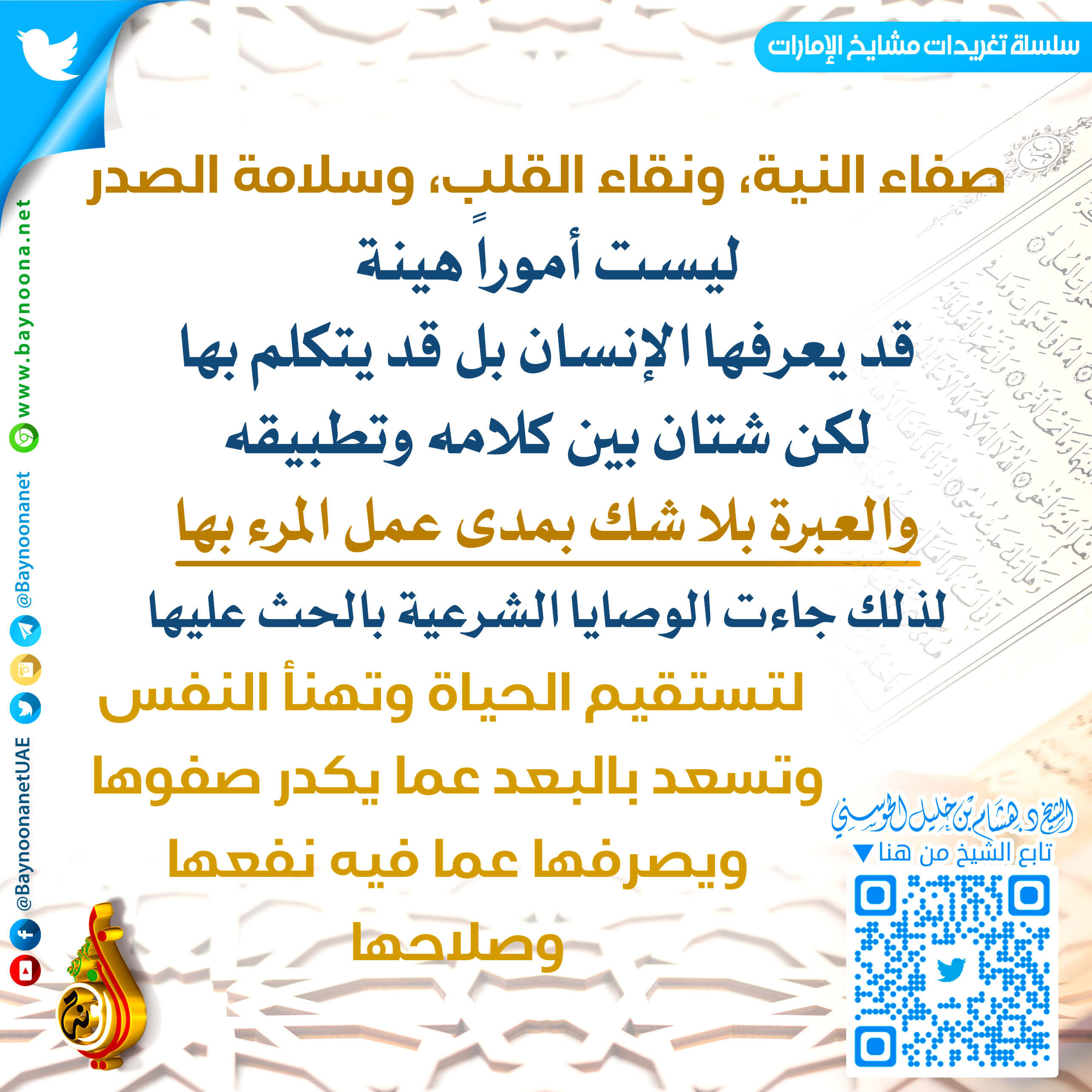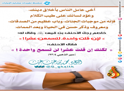 تغريدات واقتباسات الشيخ - الكل -أحمد بن محمد الشحيإبراهيم بن عبد الله المزروعيحامد بن خميس الجنيبي د. أحمد بن مبارك المزروعيد. خالد بن حمد الزعابيد. سعيد بن سالم الدرمكيد. عبدالرحمن بن سلمان الحماديد. علي بن سلمان الحماديد. محمد بن غالب العمريد. محمد بن غيث غيثد. هشام بن خليل الحوسنييوسف بن حسن الحمادي السلسلة - الكل -الطلاق ليس حلامن قواعد الدينمن معين زايد الخيرنحو أسرة سعيدة ابحث قال ﷺ: ( كفى بالمرء كذبا أن يحدث... من أراد أن يكون منشرح الصدر ... لا تحدث الناس بكل ما تعلم ولكن... أخي عامل الناس بأخلاق دينك ... من أحسن في نهاره فقام بالمطلوب منه... من المظاهر التي يجب أن تعالج:... صفاء النية ، ونقاء القلب ، وسلامة... ما أحلى الحياة وأطيبها على من جعل... من قرأ القرآن قراءة طيبة وتدبره ... إذا كنت من حفاظ القرآن ... كتابتك في تويتر الحرص على إيصال الخير لأخيك ،... من يتكلم بغير علم ... من صفات العاقل أقبل على نفسك وألزمها بالعلم... الأولى الأخيرة السابقة ... 12 13 79 15 16 من 79 التالية الأخيرة