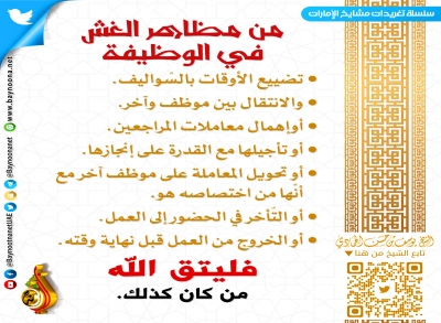 تغريدات واقتباسات الشيخ - الكل -أحمد بن محمد الشحيإبراهيم بن عبد الله المزروعيحامد بن خميس الجنيبي د. أحمد بن مبارك المزروعيد. خالد بن حمد الزعابيد. سعيد بن سالم الدرمكيد. عبدالرحمن بن سلمان الحماديد. علي بن سلمان الحماديد. محمد بن غالب العمريد. محمد بن غيث غيثد. هشام بن خليل الحوسنييوسف بن حسن الحمادي السلسلة - الكل -الطلاق ليس حلامن قواعد الدينمن معين زايد الخيرنحو أسرة سعيدة ابحث لا تستهن بفعل النوافل من الصلاة أو... أيام تمضي ، وسنوات تتعاقب ، وأعمار... أقبل على الأذان مهما تشعبت بك طرق الدنيا ... عود نفسك على الخيرات وطاعات شيئا... من حدثته نفسه بارتكاب ما نهى الله... نصيحة ذهبية لكل امرأة وفتاة... ما أعظم فضل الله ما أجمل الأب وحضوره في حياة أبنائه لا تثق بقدرتك مهما عظمت ، ولا... من مظاهر الغش في الوظيفة من قنع بما آتاه الله من رزق فهو... من سوء الغرور بالنفس كورونا كلما رأيت ناعقا يطالب بالتغيير في... الأولى الأخيرة السابقة ... 18 19 79 21 22 من 79 التالية الأخيرة