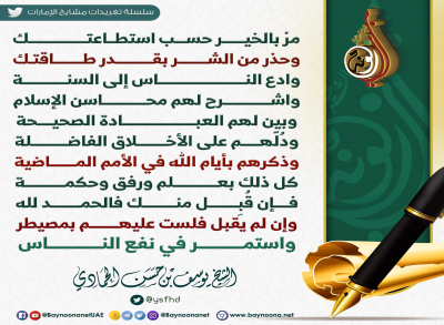تغريدات واقتباسات الشيخ - الكل -أحمد بن محمد الشحيإبراهيم بن عبد الله المزروعيحامد بن خميس الجنيبي د. أحمد بن مبارك المزروعيد. خالد بن حمد الزعابيد. سعيد بن سالم الدرمكيد. عبدالرحمن بن سلمان الحماديد. علي بن سلمان الحماديد. محمد بن غالب العمريد. محمد بن غيث غيثد. هشام بن خليل الحوسنييوسف بن حسن الحمادي السلسلة - الكل -الطلاق ليس حلامن قواعد الدينمن معين زايد الخيرنحو أسرة سعيدة ابحث كم هو محزن أن لا يدخل المرء المسجد... احذر من عمل المنكرات ... مهما تغير الناس من حولك فاثبت على... الظلم ظلمات يوم القيامة سلسلة من قواعد الدين - (٧٣) أمرنا... لا تحكم على أي قول أو عمل بالحل أو... الله الله في الشباب اقرأ سيرة النبي ﷺ بتأمل ... أسعد الناس من تنتهي سيئاته بموته... سلسلة من قواعد الدين - (٧٢) ذكر... أصول تربية الأولاد من يصاحب صاحب السوء اجتهد ما استطعلت في تبليغ دينك ... الكتابة نعمة من الله مر بالخير حسب استطاعتك الأولى الأخيرة السابقة ... 4 5 79 7 8 من 79 التالية الأخيرة