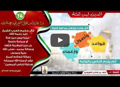 قسم المرئيات القسم - الكل -أشراط الساعةالتقويم الهجريالدعوة إلى اللهحب الوطنقضايا معاصرةآثار السلفالتزكياتأحكام متفرقة - أحكام التصوير - أحكام المساجد - الإجازة الصيفية - الاستسقاء - شهر شعبان - شهر شوال - شهر صفر - عيد الحب - أحكام الشتاء - أحكام العقيقة - شهر الله المحرم - شهر رجب - يوم عاشوراء - أحكام العورات - أحكام تخص المصحف - أحكام تخص النساء - اللباس والزينة - فضائل القرآن - الأمر بالمعروف والنهي عن المنكر - السفر إلى بلاد الكفارالتفسيرأحكام التجويدالحديث - علوم الحديث - - مصطلح الحديث - فقه الحديثالعقيدة والمنهج - توجيهات في المنهج - كشف شبهات الخوارج - الإيمان بالله - الولاء والبراء - شبهات والرد عليها - البدع المحدثة - الشرك وأنواعه - الإيمان بالملائكة - الإيمان بالكتب - الإيمان بالرسل - الإيمان باليوم الآخر - الإيمان بالقدر - التوحيد - الإيمان والكفر - الصحابة - معاملة الحكام - الملل والنحلأصول الفقهالفقه - الجنائز - - إهداء القرب للميت - - الصلاة على الميت - - تعزية أهل الميت - الجنايات - الديات - الكفارات - النذر - الرضاع - الطهارة - - التيمم - - الغسل - - المسح على الخفين - - الوضوء وصفته - - نواقض الوضوء - الصلاة - - أحكام قصر وجمع الصلاة - - صلاة الكسوف والخسوف - - صلاة الاستسقاء - - العيدين - - أركان الصلاة - - الإمامة وأحكام المساجد - - صفة الصلاة - - صلاة التطوع - - صلاة الجمعة - - شروط الصلاة - - صلاة الجماعة - الزكاة - - إخراج الزكاة - - زكاة الفطر - - زكاة بهيمة الأنعام - - زكاة عروض التجارة - - صدقة التطوع - الصيام - - أحكام القضاء - - الاعتكاف - - الجماع في نهار رمضان - - النية وأحكامها - - دخول الشهر وخروجه - - صوم التطوع - - ليلة القدر - - ما يكره ويستحب في الصيام - - مفسدات الصوم - - من يجب عليه الصوم والأسباب المبيحة للفطر - - منوعات الصيام - - شهر رمضان - الحج والعمرة - - الإحرام - - يوم النحر - - السعي - - الطواف - - عشر ذي الحجة - - يوم عرفة - - شروط الحج - - صفة الحج والعمرة - - طواف الوداع - - الهدي والأضحية - الجهاد - النكاح - - أركان النكاح - - الأسرة - - - خاص بالأشبال - - حقوق الزوج - - حقوق الزوجة - - الخلع - - الطلاق - - خطبة النكاح وأحكام النظر والخلوة - - مسائل متفرقة في النكاح - - وليمة العرس - المعاملات - - الإجارة - - البيوع والمعاملات المحرمة - - الربا والصرف - - الشروط في البيع - - القرض - - باب الهبة والعطية - - كتاب الوصايا - الفرائض - الأدعية والأذكارالأخلاق والآدابالتربيةالسير والتراجم - السيرة النبوية - قصص الأنبياءالطب النبوي - الرقية الشرعية - مرض كورونااللغة العربية - الإملاء - الصرف - النحوالمظاهراتتزكية النفسطلب العلم - فضل العلم والعلماءلقاء مفتوحوصايا ونصائح الشيخ - الكل -أحمد بن محمد الشحيإبراهيم بن عبد الله المزروعيحامد بن خميس الجنيبي د. أحمد بن مبارك المزروعيد. خالد بن حمد الزعابيد. سعيد بن سالم الدرمكيد. عبدالرحمن بن سلمان الحماديد. علي بن سلمان الحماديد. محمد بن غالب العمريد. محمد بن غيث غيثد. هشام بن خليل الحوسنيمجموعة من المشايخيوسف بن حسن الحمادي إعداد - الكل -من إعداد شبكة بينونة السلسلة - الكل -إياكم ومحدثات الأمورالثورات للأطفال - سؤال وجوابتوحيد الله جل وعلادرر وفرائد من أقوال الشيخ زايد رحمه اللهشبهة والرد عليهافي كل يوم كتابمحطات من السيرة النبويةمن أسماء الله الحسنىمن وصايا السلفمواقف يوم القيامة ابحث أعظم ما يحفز طالب العلم اتباع السنة مع القرآن من أسباب... التقي والشقي في القبر حور مقصورات في الخيام درر وفرائد من أقوال الشيخ زايد... درر وفرائد من أقوال الشيخ زايد... نعمة الإيمان وحقيقته عقيدة براعم الإسلام تعلق القلب بالمساجد هدايات أهل التقوى مع القرآن الكريم التعاون مع ولاة الأمر احذروا يا أبنائي لعبة ببجي واعبد ربك حتى يأتيك اليقين طول العمر وحسن العمل درر وفرائد من أقوال الشيخ زايد... الأولى الأخيرة السابقة ... 47 48 83 50 51 من 83 التالية الأخيرة