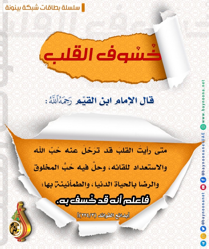 خُسُوف القلب تاريخ الإضافة: السبت, 29/09/2018 - 19:05 التصنيفات صنف البطاقة: إيمانيات صنف البطاقة: الأخلاق والآداب الشيخ: من إعداد شبكة بينونة