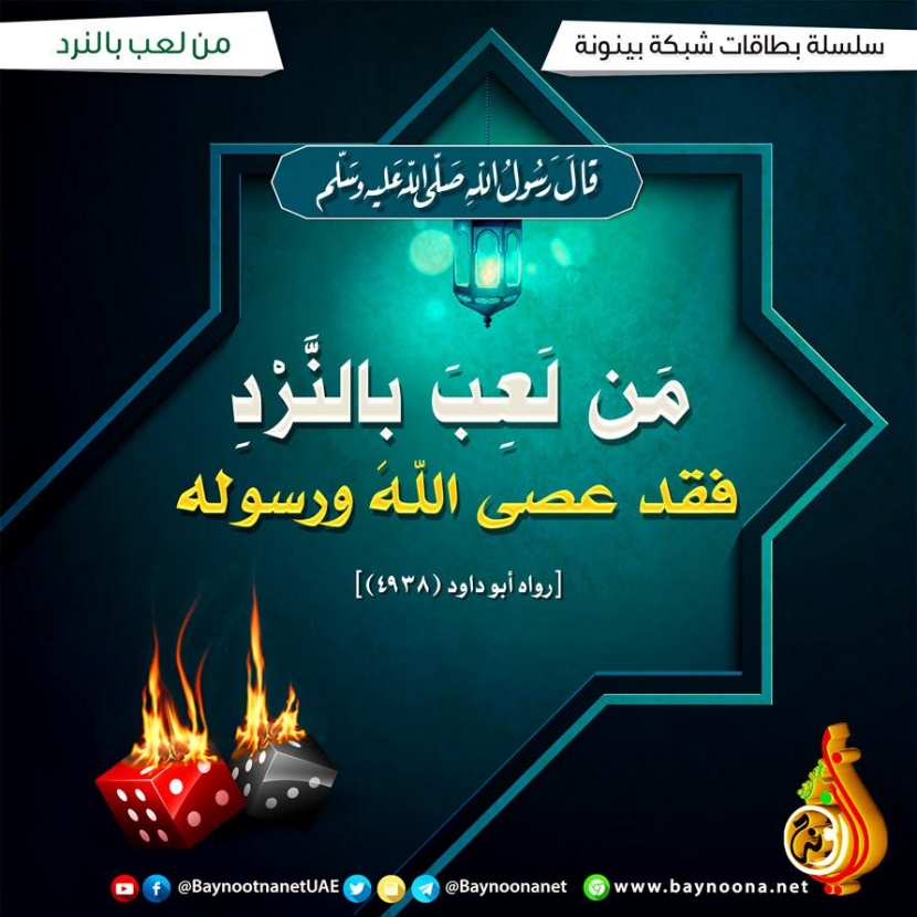 من لعب بالنرد تاريخ الإضافة: السبت, 13/10/2018 - 15:26 التصنيفات صنف البطاقة: إيمانيات صنف البطاقة: الأخلاق والآداب الشيخ: من إعداد شبكة بينونة