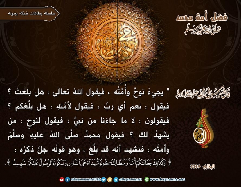 فضل أمة محمد ﷺ تاريخ الإضافة: الأحد, 09/12/2018 - 16:37 التصنيفات صنف البطاقة: إيمانيات الشيخ: من إعداد شبكة بينونة