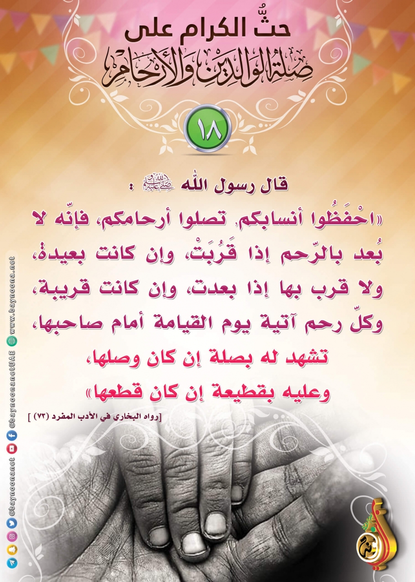 حث الكرام على صلة الوالدين والأرحام (18) تاريخ الإضافة: الأحد, 08/09/2019 - 17:16 التصنيفات صنف البطاقة: الأخلاق والآداب الشيخ: من إعداد شبكة بينونة سلسلة بطاقات: حث الكرام على صلة الوالدين والأرحام