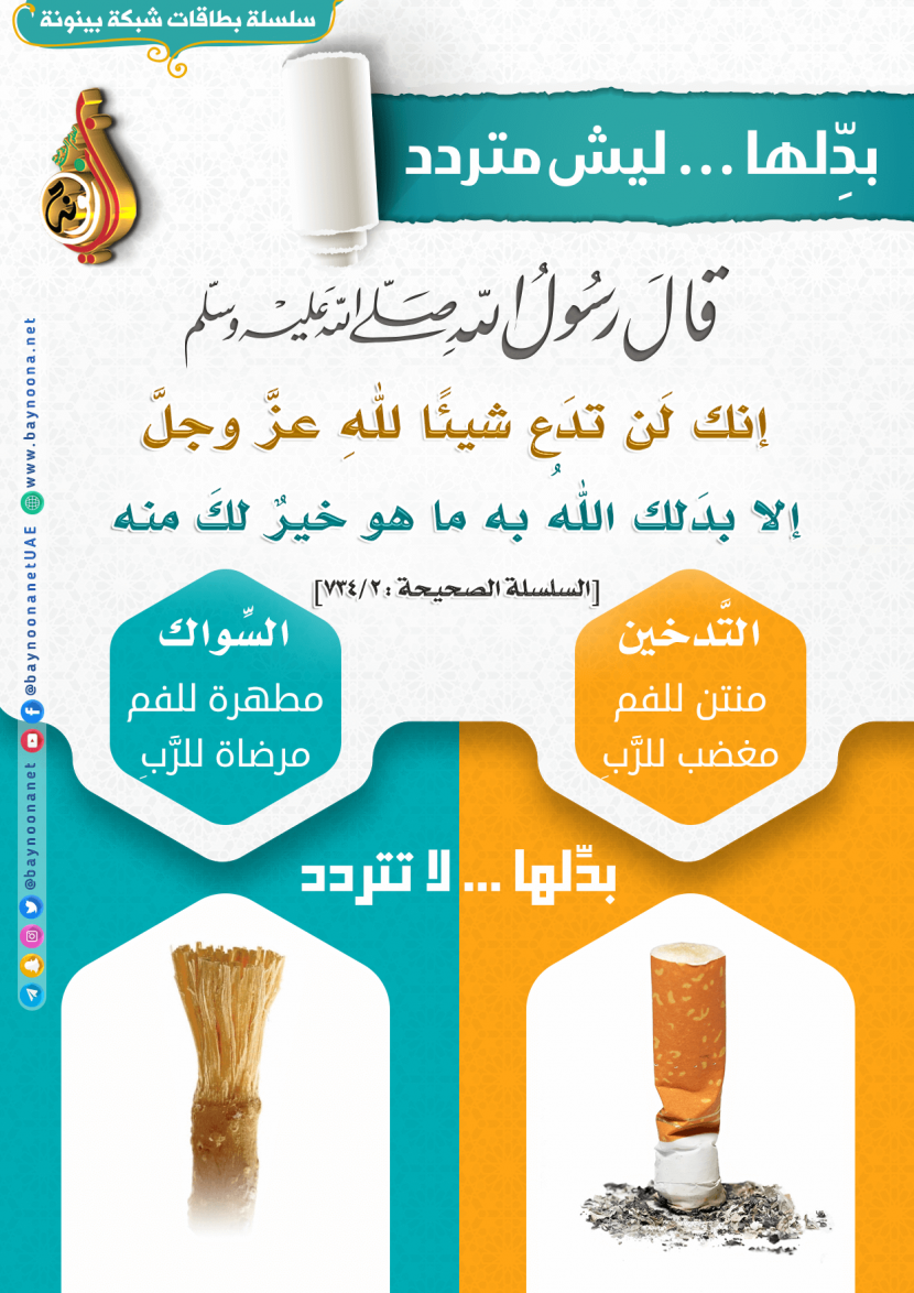 بدلها .. لا تتردد تاريخ الإضافة: الأربعاء, 16/10/2019 - 00:38 التصنيفات صنف البطاقة: الأخلاق والآداب الشيخ: من إعداد شبكة بينونة