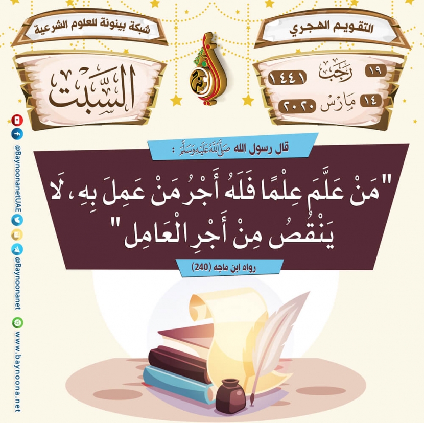 التقويم الهجري لعام ١٤٤١ هـ - السبت ١٩ رجب تاريخ الإضافة: السبت, 14/03/2020 - 01:24 التصنيفات صنف البطاقة: عامة الشيخ: من إعداد شبكة بينونة سلسلة بطاقات: التقويم الهجري لعام ١٤٤١هـ حمل السلسلة كاملة: التقويم الهجري لعام ١٤٤١ هـ - شهر الله المحرّم حمل السلسلة كاملة: التقويم الهجري لعام ١٤٤١ هـ - شهر صفر حمل السلسلة كاملة: التقويم الهجري لعام ١٤٤١ هـ - شهر ربيع الأول حمل السلسلة كاملة: التقويم الهجري لعام ١٤٤١ هـ - شهر ربيع الثاني حمل السلسلة كاملة: التقويم الهجري لعام ١٤٤١ هـ - شهر جمادى الأولى حمل السلسلة كاملة: التقويم الهجري لعام ١٤٤١ هـ - شهر جمادى الآخرة حمل السلسلة كاملة: التقويم الهجري لعام ١٤٤١ هـ - شهر رجب حمل السلسلة كاملة: التقويم الهجري لعام ١٤٤١ هـ - شهر شعبان حمل السلسلة كاملة: التقويم الهجري لعام ١٤٤١ هـ - شهر رمضان حمل السلسلة كاملة: التقويم الهجري لعام ١٤٤١ هـ - شهر شوال حمل السلسلة كاملة: التقويم الهجري لعام ١٤٤١ هـ - شهر ذو القعدة حمل السلسلة كاملة: التقويم الهجري لعام ١٤٤١ هـ - شهر ذو الحجة