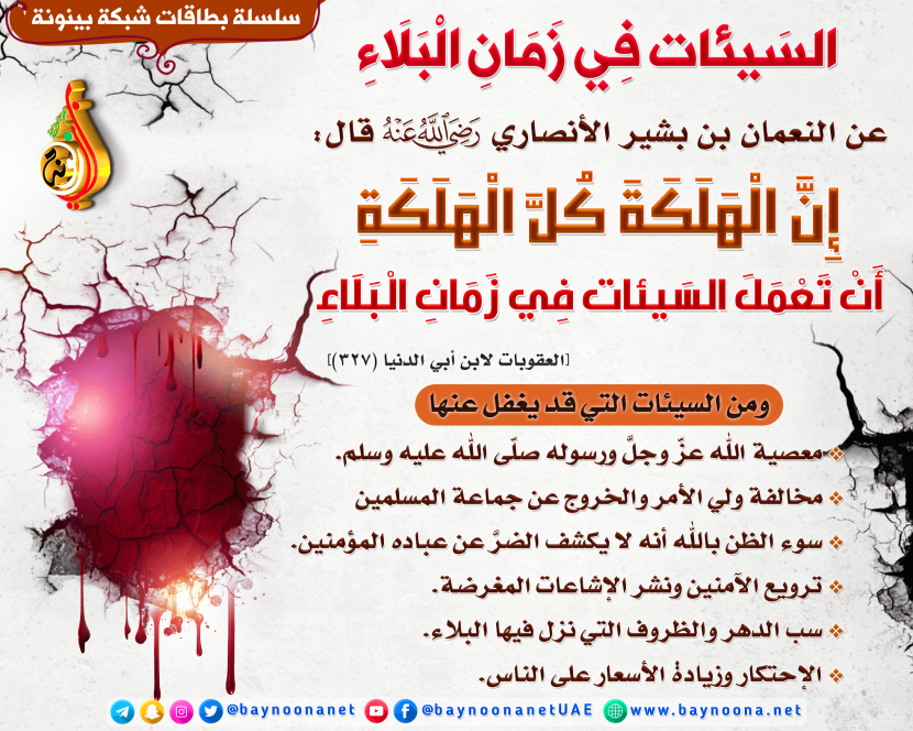 السيئات في زمن البلاء تاريخ الإضافة: الأربعاء, 18/03/2020 - 21:14 التصنيفات صنف البطاقة: إيمانيات صنف البطاقة: التحذير من المعاصي الشيخ: من إعداد شبكة بينونة
