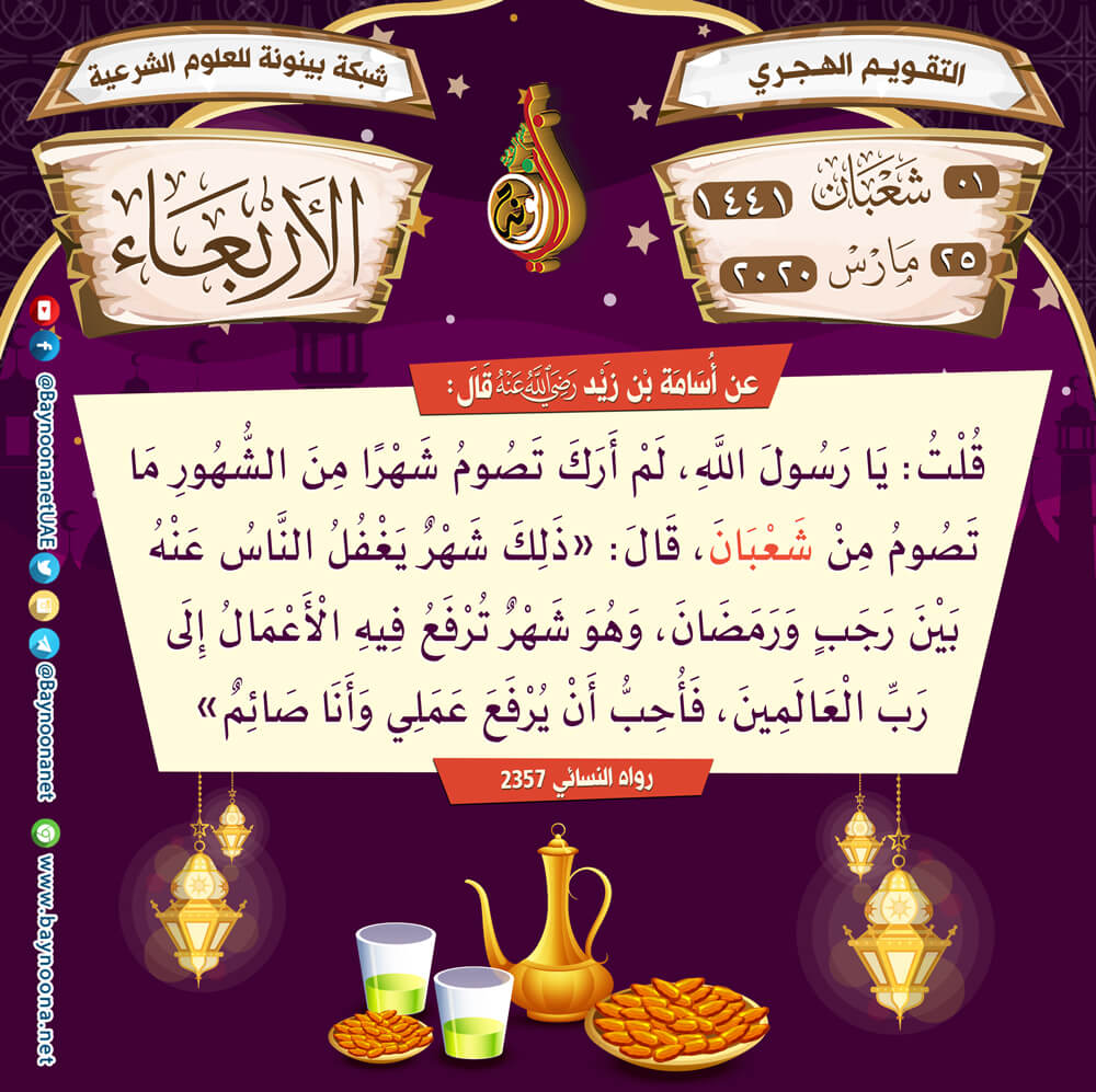 التقويم الهجري لعام ١٤٤١ هـ - الأربعاء ٠١ شعبان تاريخ الإضافة: الثلاثاء, 24/03/2020 - 23:37 التصنيفات صنف البطاقة: عامة الشيخ: من إعداد شبكة بينونة سلسلة بطاقات: التقويم الهجري لعام ١٤٤١هـ حمل السلسلة كاملة: التقويم الهجري لعام ١٤٤١ هـ - شهر الله المحرّم حمل السلسلة كاملة: التقويم الهجري لعام ١٤٤١ هـ - شهر صفر حمل السلسلة كاملة: التقويم الهجري لعام ١٤٤١ هـ - شهر ربيع الأول حمل السلسلة كاملة: التقويم الهجري لعام ١٤٤١ هـ - شهر ربيع الثاني حمل السلسلة كاملة: التقويم الهجري لعام ١٤٤١ هـ - شهر جمادى الأولى حمل السلسلة كاملة: التقويم الهجري لعام ١٤٤١ هـ - شهر جمادى الآخرة حمل السلسلة كاملة: التقويم الهجري لعام ١٤٤١ هـ - شهر رجب حمل السلسلة كاملة: التقويم الهجري لعام ١٤٤١ هـ - شهر شعبان حمل السلسلة كاملة: التقويم الهجري لعام ١٤٤١ هـ - شهر رمضان حمل السلسلة كاملة: التقويم الهجري لعام ١٤٤١ هـ - شهر شوال حمل السلسلة كاملة: التقويم الهجري لعام ١٤٤١ هـ - شهر ذو القعدة حمل السلسلة كاملة: التقويم الهجري لعام ١٤٤١ هـ - شهر ذو الحجة