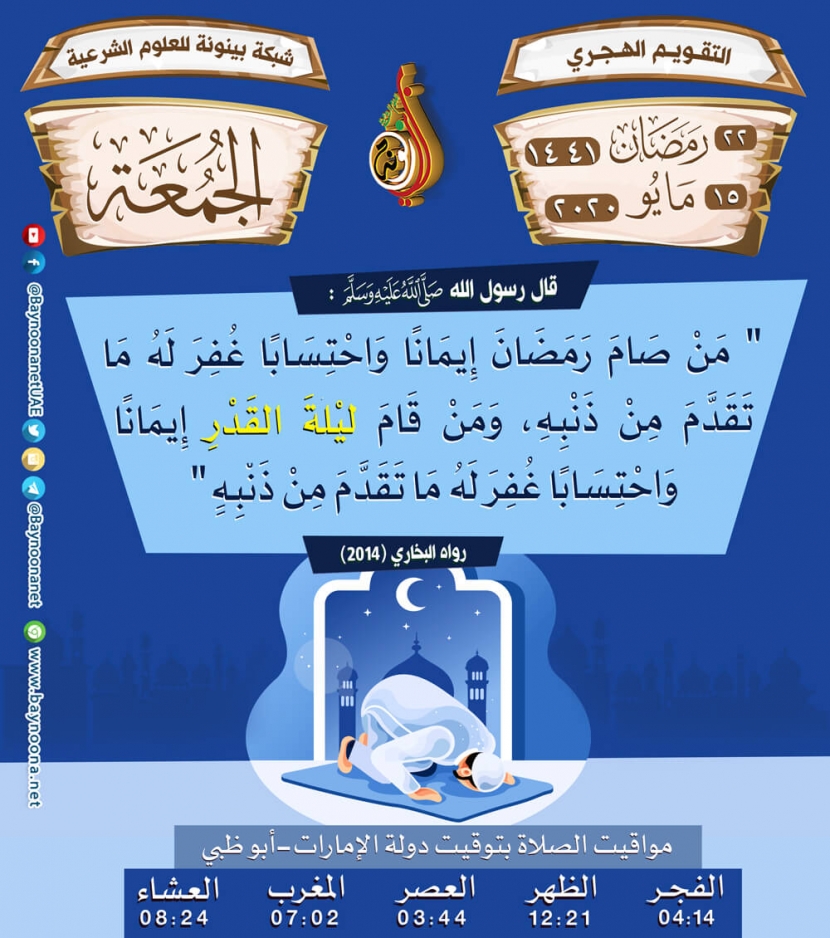 التقويم الهجري لعام ١٤٤١ هـ - الجمعة ٢٢ رمضان تاريخ الإضافة: الجمعة, 15/05/2020 - 01:41 التصنيفات صنف البطاقة: عامة الشيخ: من إعداد شبكة بينونة سلسلة بطاقات: التقويم الهجري لعام ١٤٤١هـ حمل السلسلة كاملة: التقويم الهجري لعام ١٤٤١ هـ - شهر الله المحرّم حمل السلسلة كاملة: التقويم الهجري لعام ١٤٤١ هـ - شهر صفر حمل السلسلة كاملة: التقويم الهجري لعام ١٤٤١ هـ - شهر ربيع الأول حمل السلسلة كاملة: التقويم الهجري لعام ١٤٤١ هـ - شهر ربيع الثاني حمل السلسلة كاملة: التقويم الهجري لعام ١٤٤١ هـ - شهر جمادى الأولى حمل السلسلة كاملة: التقويم الهجري لعام ١٤٤١ هـ - شهر جمادى الآخرة حمل السلسلة كاملة: التقويم الهجري لعام ١٤٤١ هـ - شهر رجب حمل السلسلة كاملة: التقويم الهجري لعام ١٤٤١ هـ - شهر شعبان حمل السلسلة كاملة: التقويم الهجري لعام ١٤٤١ هـ - شهر رمضان حمل السلسلة كاملة: التقويم الهجري لعام ١٤٤١ هـ - شهر شوال حمل السلسلة كاملة: التقويم الهجري لعام ١٤٤١ هـ - شهر ذو القعدة حمل السلسلة كاملة: التقويم الهجري لعام ١٤٤١ هـ - شهر ذو الحجة