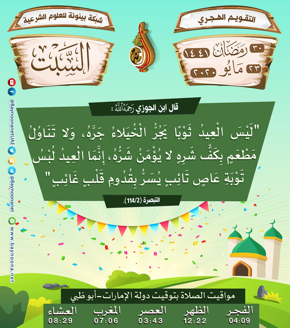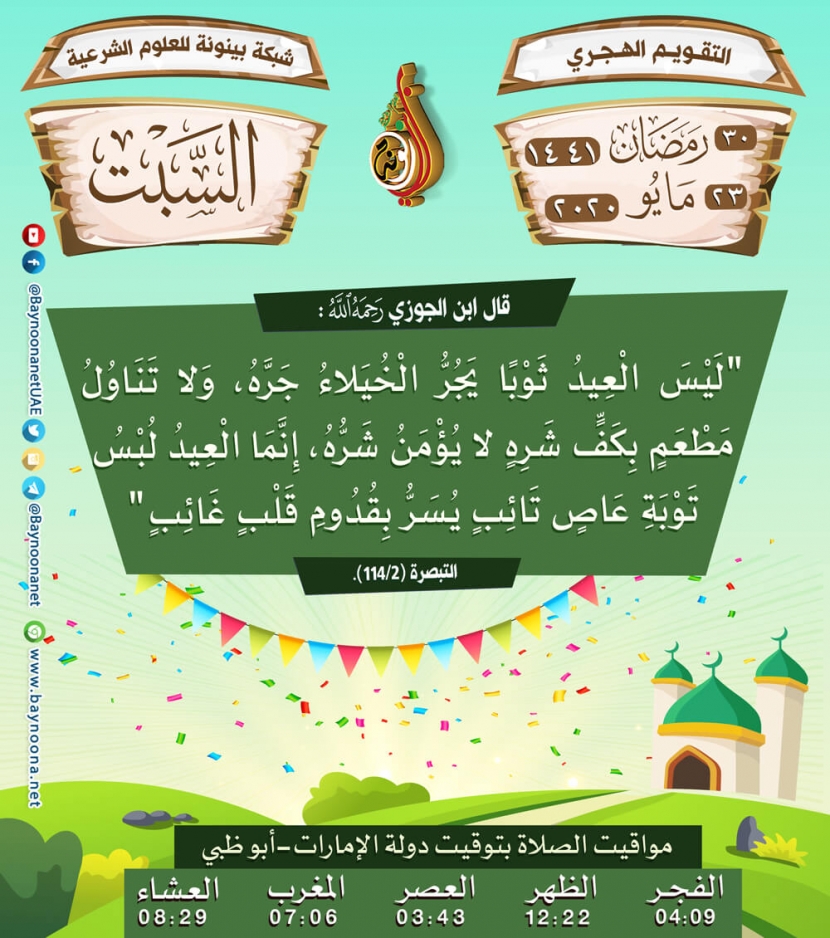 التقويم الهجري لعام ١٤٤١ هـ - السبت ٣٠ رمضان تاريخ الإضافة: السبت, 23/05/2020 - 02:01 التصنيفات صنف البطاقة: عامة الشيخ: من إعداد شبكة بينونة سلسلة بطاقات: التقويم الهجري لعام ١٤٤١هـ حمل السلسلة كاملة: التقويم الهجري لعام ١٤٤١ هـ - شهر الله المحرّم حمل السلسلة كاملة: التقويم الهجري لعام ١٤٤١ هـ - شهر صفر حمل السلسلة كاملة: التقويم الهجري لعام ١٤٤١ هـ - شهر ربيع الأول حمل السلسلة كاملة: التقويم الهجري لعام ١٤٤١ هـ - شهر ربيع الثاني حمل السلسلة كاملة: التقويم الهجري لعام ١٤٤١ هـ - شهر جمادى الأولى حمل السلسلة كاملة: التقويم الهجري لعام ١٤٤١ هـ - شهر جمادى الآخرة حمل السلسلة كاملة: التقويم الهجري لعام ١٤٤١ هـ - شهر رجب حمل السلسلة كاملة: التقويم الهجري لعام ١٤٤١ هـ - شهر شعبان حمل السلسلة كاملة: التقويم الهجري لعام ١٤٤١ هـ - شهر رمضان حمل السلسلة كاملة: التقويم الهجري لعام ١٤٤١ هـ - شهر شوال حمل السلسلة كاملة: التقويم الهجري لعام ١٤٤١ هـ - شهر ذو القعدة حمل السلسلة كاملة: التقويم الهجري لعام ١٤٤١ هـ - شهر ذو الحجة