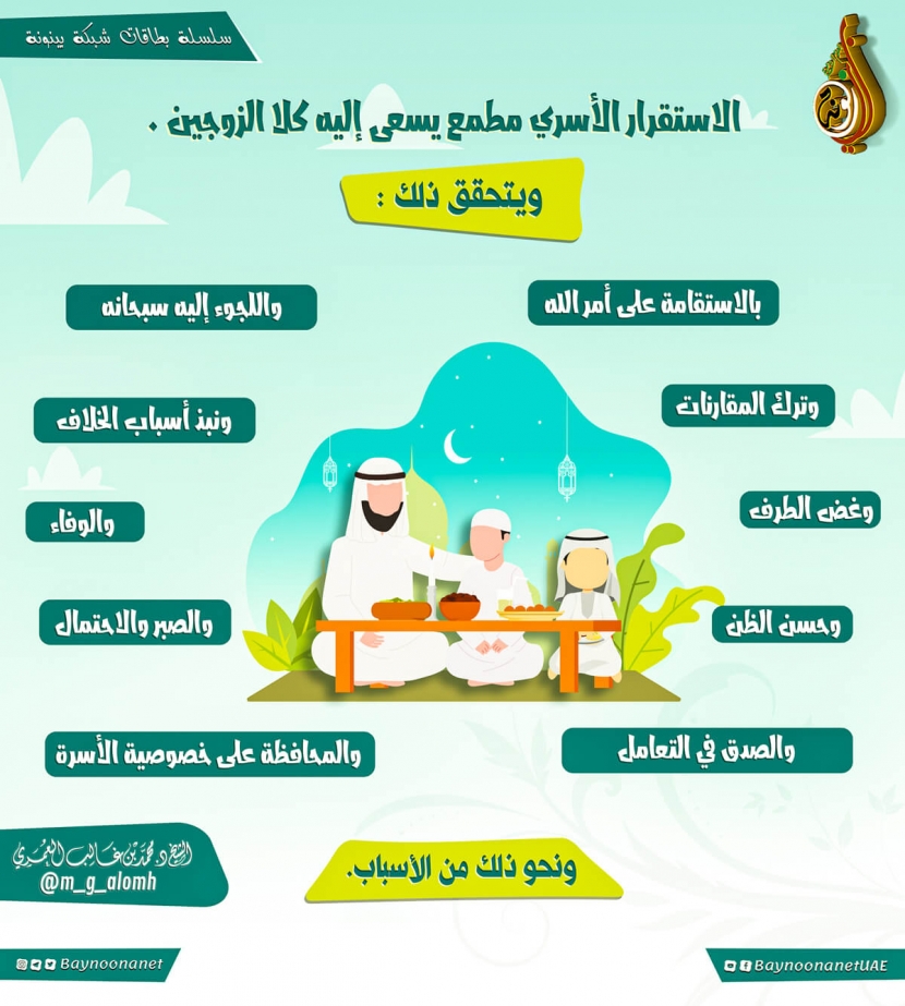 الاستقرار الأسري مطمع يسعى إليه كلا الزوجين ... تاريخ الإضافة: الأحد, 31/05/2020 - 13:42 التصنيفات صنف البطاقة: الأخلاق والآداب صنف البطاقة: ركن الأسرة الشيخ: د. محمد بن غالب العمري