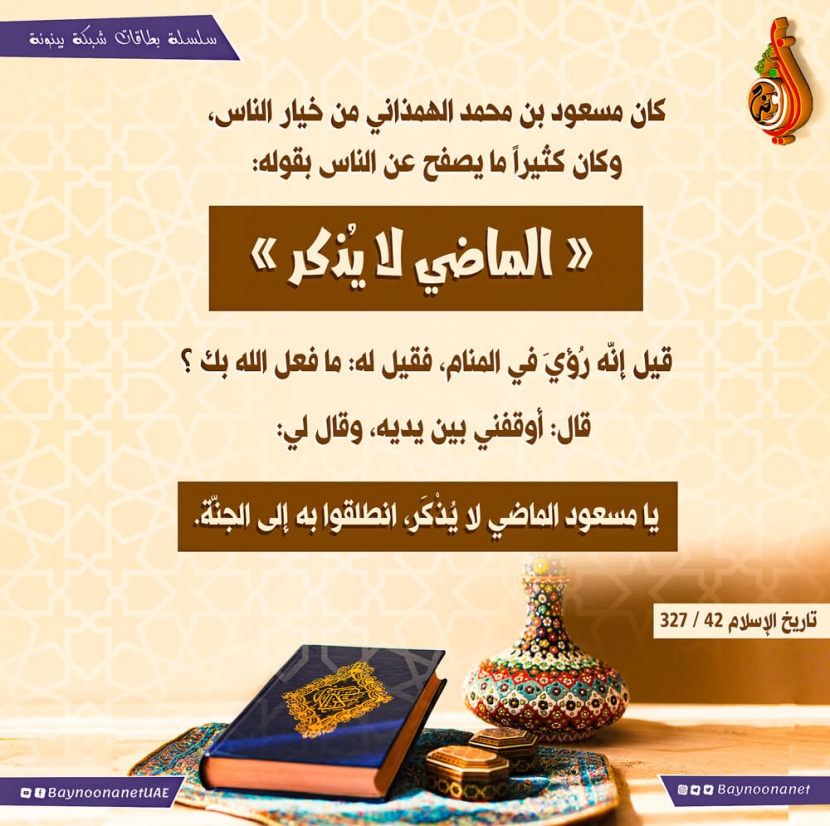 الماضي لا يذكر ... تاريخ الإضافة: الخميس, 11/06/2020 - 14:25 التصنيفات صنف البطاقة: الأخلاق والآداب صنف البطاقة: من آثار السلف الشيخ: من إعداد شبكة بينونة