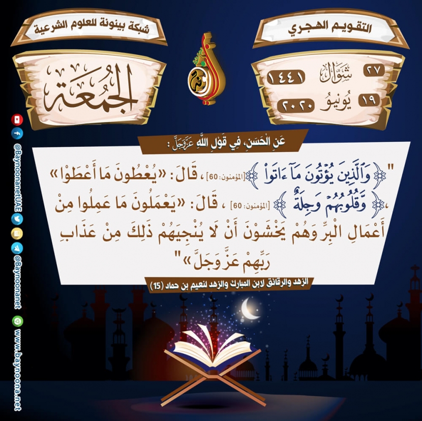 التقويم الهجري لعام ١٤٤١ هـ - الجمعة ٢٧ شوال تاريخ الإضافة: الجمعة, 19/06/2020 - 01:27 التصنيفات صنف البطاقة: عامة الشيخ: من إعداد شبكة بينونة سلسلة بطاقات: التقويم الهجري لعام ١٤٤١هـ حمل السلسلة كاملة: التقويم الهجري لعام ١٤٤١ هـ - شهر الله المحرّم حمل السلسلة كاملة: التقويم الهجري لعام ١٤٤١ هـ - شهر صفر حمل السلسلة كاملة: التقويم الهجري لعام ١٤٤١ هـ - شهر ربيع الأول حمل السلسلة كاملة: التقويم الهجري لعام ١٤٤١ هـ - شهر ربيع الثاني حمل السلسلة كاملة: التقويم الهجري لعام ١٤٤١ هـ - شهر جمادى الأولى حمل السلسلة كاملة: التقويم الهجري لعام ١٤٤١ هـ - شهر جمادى الآخرة حمل السلسلة كاملة: التقويم الهجري لعام ١٤٤١ هـ - شهر رجب حمل السلسلة كاملة: التقويم الهجري لعام ١٤٤١ هـ - شهر شعبان حمل السلسلة كاملة: التقويم الهجري لعام ١٤٤١ هـ - شهر رمضان حمل السلسلة كاملة: التقويم الهجري لعام ١٤٤١ هـ - شهر شوال حمل السلسلة كاملة: التقويم الهجري لعام ١٤٤١ هـ - شهر ذو القعدة حمل السلسلة كاملة: التقويم الهجري لعام ١٤٤١ هـ - شهر ذو الحجة