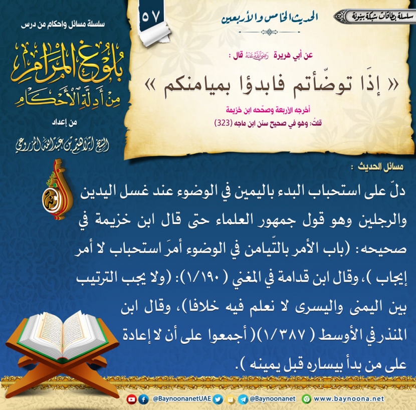 مسائل وأحكام من درس بلوغ المرام من أدلة الأحكام - (57) الحديث الخامس والأربعين تاريخ الإضافة: الثلاثاء, 23/06/2020 - 14:12 التصنيفات صنف البطاقة: العبادات الشيخ: إبراهيم بن عبد الله المزروعي سلسلة بطاقات: مسائل وأحكام من درس بلوغ المرام من أدلة الأحكام حمل السلسلة كاملة: بلوغ المرام أحاديث ومسائل - كتاب الطهارة (الجزء الأول)