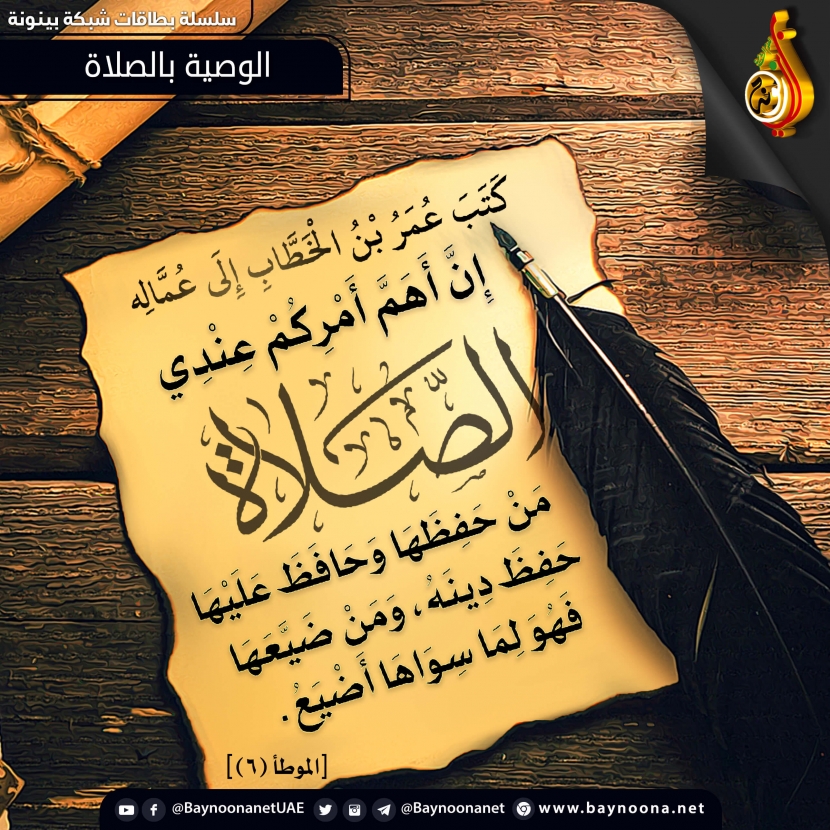 الوصية بالصلاة تاريخ الإضافة: الأربعاء, 15/07/2020 - 14:37 التصنيفات صنف البطاقة: العبادات الشيخ: من إعداد شبكة بينونة