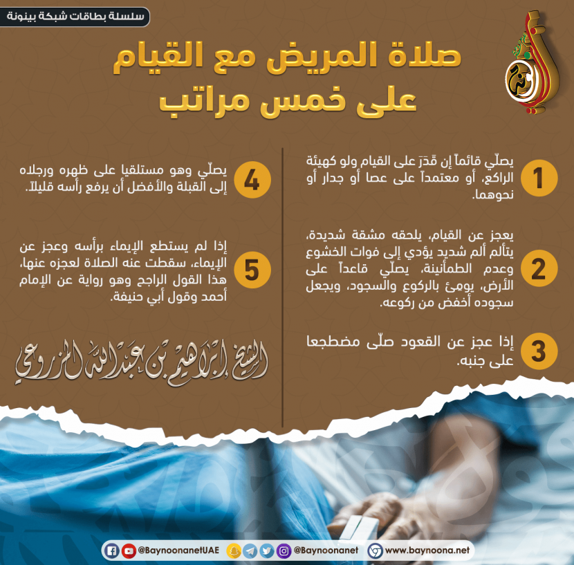 صلاة المريض مع القيام على خمسة مراتب تاريخ الإضافة: الإثنين, 10/08/2020 - 20:32 التصنيفات صنف البطاقة: العبادات الشيخ: إبراهيم بن عبد الله المزروعي