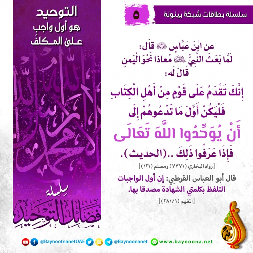 فضائل التوحيد - (٥) التوحيد هو أول واجب على المكلف تاريخ الإضافة: الجمعة, 13/11/2020 - 19:37 التصنيفات صنف البطاقة: إيمانيات الشيخ: من إعداد شبكة بينونة سلسلة بطاقات: فضائل التوحيد حمل السلسلة كاملة: فضائل التوحيد