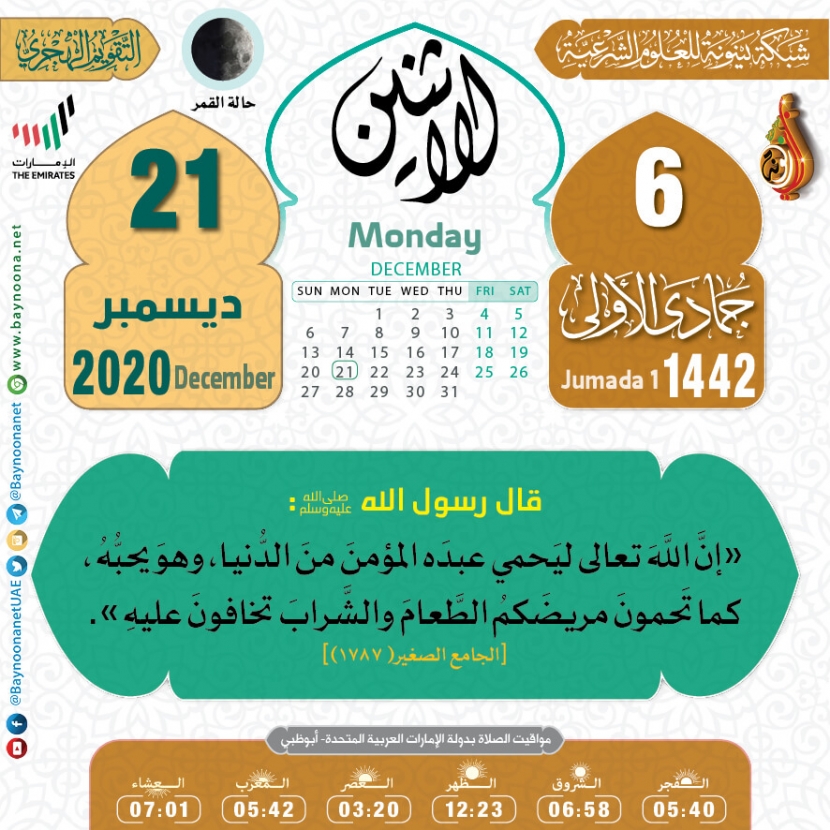 التقويم الهجري لعام ١٤٤٢ هـ - الإثنين ٠٦ جمادى الأولى تاريخ الإضافة: الإثنين, 21/12/2020 - 02:12 التصنيفات صنف البطاقة: عامة الشيخ: من إعداد شبكة بينونة سلسلة بطاقات: التقويم الهجري لعام ١٤٤٢هـ حمل السلسلة كاملة: التقويم الهجري لعام ١٤٤٢ هـ - شهر الله المحرم حمل السلسلة كاملة: التقويم الهجري لعام ١٤٤٢ هـ - شهر صفر حمل السلسلة كاملة: التقويم الهجري لعام ١٤٤٢ هـ - شهر ربيع الأول حمل السلسلة كاملة: التقويم الهجري لعام ١٤٤٢ هـ - شهر ربيع الثاني حمل السلسلة كاملة: التقويم الهجري لعام ١٤٤٢ هـ - شهر جمادى الأولى حمل السلسلة كاملة: التقويم الهجري لعام ١٤٤٢ هـ - شهر جمادى الآخرة حمل السلسلة كاملة: التقويم الهجري لعام ١٤٤٢ هـ - شهر رجب حمل السلسلة كاملة: التقويم الهجري لعام ١٤٤٢ هـ - شهر شعبان حمل السلسلة كاملة: التقويم الهجري لعام ١٤٤٢ هـ - شهر رمضان حمل السلسلة كاملة: التقويم الهجري لعام ١٤٤٢ هـ - شهر شوال حمل السلسلة كاملة: التقويم الهجري لعام ١٤٤٢ هـ - شهر ذو القعدة حمل السلسلة كاملة: التقويم الهجري لعام ١٤٤٢ هـ - شهر ذو الحجة