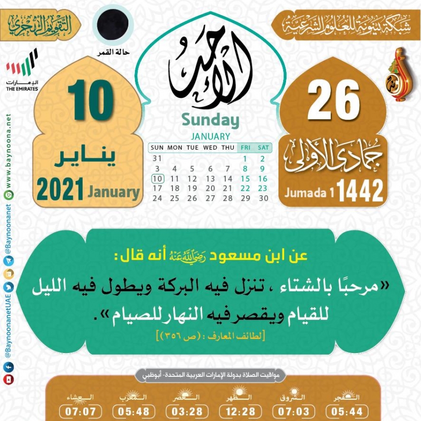 التقويم الهجري لعام ١٤٤٢ هـ - الأحد ٢٦ جمادى الأولى تاريخ الإضافة: الأحد, 10/01/2021 - 00:22 التصنيفات صنف البطاقة: عامة الشيخ: من إعداد شبكة بينونة سلسلة بطاقات: التقويم الهجري لعام ١٤٤٢هـ حمل السلسلة كاملة: التقويم الهجري لعام ١٤٤٢ هـ - شهر الله المحرم حمل السلسلة كاملة: التقويم الهجري لعام ١٤٤٢ هـ - شهر صفر حمل السلسلة كاملة: التقويم الهجري لعام ١٤٤٢ هـ - شهر ربيع الأول حمل السلسلة كاملة: التقويم الهجري لعام ١٤٤٢ هـ - شهر ربيع الثاني حمل السلسلة كاملة: التقويم الهجري لعام ١٤٤٢ هـ - شهر جمادى الأولى حمل السلسلة كاملة: التقويم الهجري لعام ١٤٤٢ هـ - شهر جمادى الآخرة حمل السلسلة كاملة: التقويم الهجري لعام ١٤٤٢ هـ - شهر رجب حمل السلسلة كاملة: التقويم الهجري لعام ١٤٤٢ هـ - شهر شعبان حمل السلسلة كاملة: التقويم الهجري لعام ١٤٤٢ هـ - شهر رمضان حمل السلسلة كاملة: التقويم الهجري لعام ١٤٤٢ هـ - شهر شوال حمل السلسلة كاملة: التقويم الهجري لعام ١٤٤٢ هـ - شهر ذو القعدة حمل السلسلة كاملة: التقويم الهجري لعام ١٤٤٢ هـ - شهر ذو الحجة