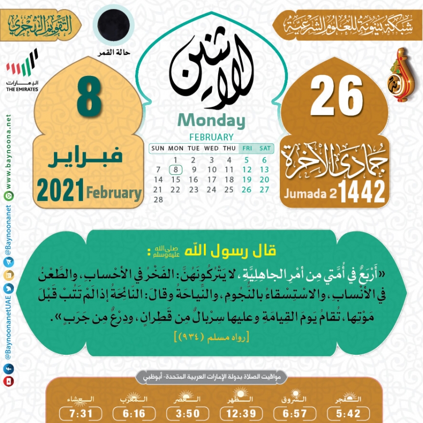 التقويم الهجري لعام ١٤٤٢ هـ - الإثنين ٢٦ جمادى الآخرة تاريخ الإضافة: الأحد, 07/02/2021 - 23:41 التصنيفات صنف البطاقة: عامة الشيخ: من إعداد شبكة بينونة سلسلة بطاقات: التقويم الهجري لعام ١٤٤٢هـ حمل السلسلة كاملة: التقويم الهجري لعام ١٤٤٢ هـ - شهر الله المحرم حمل السلسلة كاملة: التقويم الهجري لعام ١٤٤٢ هـ - شهر صفر حمل السلسلة كاملة: التقويم الهجري لعام ١٤٤٢ هـ - شهر ربيع الأول حمل السلسلة كاملة: التقويم الهجري لعام ١٤٤٢ هـ - شهر ربيع الثاني حمل السلسلة كاملة: التقويم الهجري لعام ١٤٤٢ هـ - شهر جمادى الأولى حمل السلسلة كاملة: التقويم الهجري لعام ١٤٤٢ هـ - شهر جمادى الآخرة حمل السلسلة كاملة: التقويم الهجري لعام ١٤٤٢ هـ - شهر رجب حمل السلسلة كاملة: التقويم الهجري لعام ١٤٤٢ هـ - شهر شعبان حمل السلسلة كاملة: التقويم الهجري لعام ١٤٤٢ هـ - شهر رمضان حمل السلسلة كاملة: التقويم الهجري لعام ١٤٤٢ هـ - شهر شوال حمل السلسلة كاملة: التقويم الهجري لعام ١٤٤٢ هـ - شهر ذو القعدة حمل السلسلة كاملة: التقويم الهجري لعام ١٤٤٢ هـ - شهر ذو الحجة