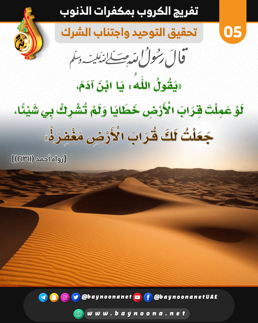 تفريج الكروب بمكفرات الذنوب - (٠٥) تحقيق التوحيد واجتناب الشرك تاريخ الإضافة: الثلاثاء, 09/02/2021 - 15:09 التصنيفات صنف البطاقة: إيمانيات الشيخ: من إعداد شبكة بينونة سلسلة بطاقات: تفريج الكروب بمكفرات الذنوب حمل السلسلة كاملة: تفريج الكروب بمكفرات الذنوب