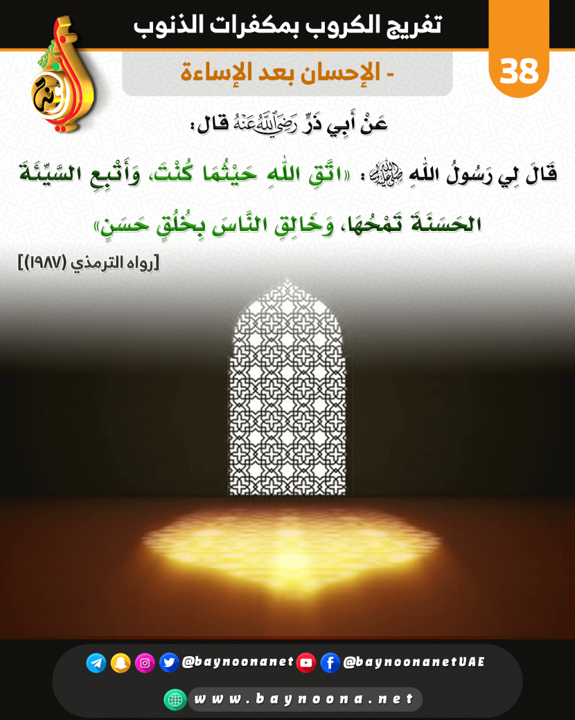 تفريج الكروب بمكفرات الذنوب - (٣٨) الإحسان بعد الإساءة تاريخ الإضافة: الإثنين, 15/03/2021 - 15:19 التصنيفات صنف البطاقة: إيمانيات صنف البطاقة: الأخلاق والآداب الشيخ: من إعداد شبكة بينونة سلسلة بطاقات: تفريج الكروب بمكفرات الذنوب حمل السلسلة كاملة: تفريج الكروب بمكفرات الذنوب