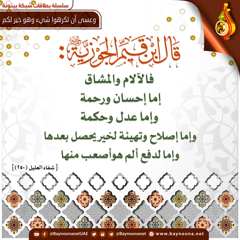 وعسى أن تكرهوا شيء وهو خير لكم تاريخ الإضافة: الأحد, 30/05/2021 - 18:06 التصنيفات صنف البطاقة: إيمانيات صنف البطاقة: الأخلاق والآداب الشيخ: من إعداد شبكة بينونة