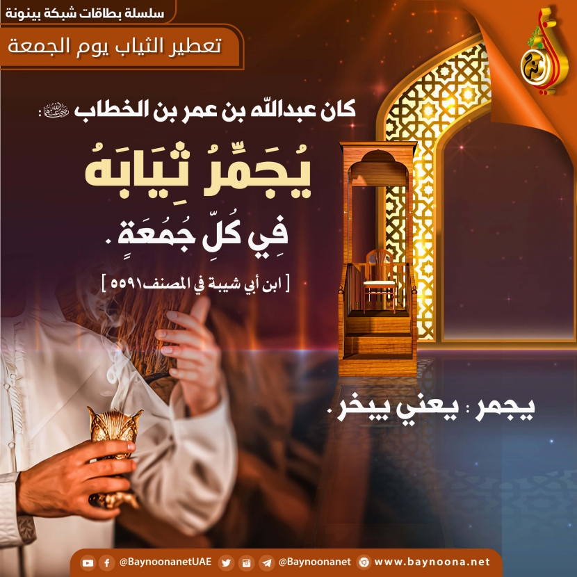 تعطير الثياب يوم الجمعة تاريخ الإضافة: الخميس, 19/08/2021 - 18:49 التصنيفات صنف البطاقة: الأخلاق والآداب الشيخ: من إعداد شبكة بينونة