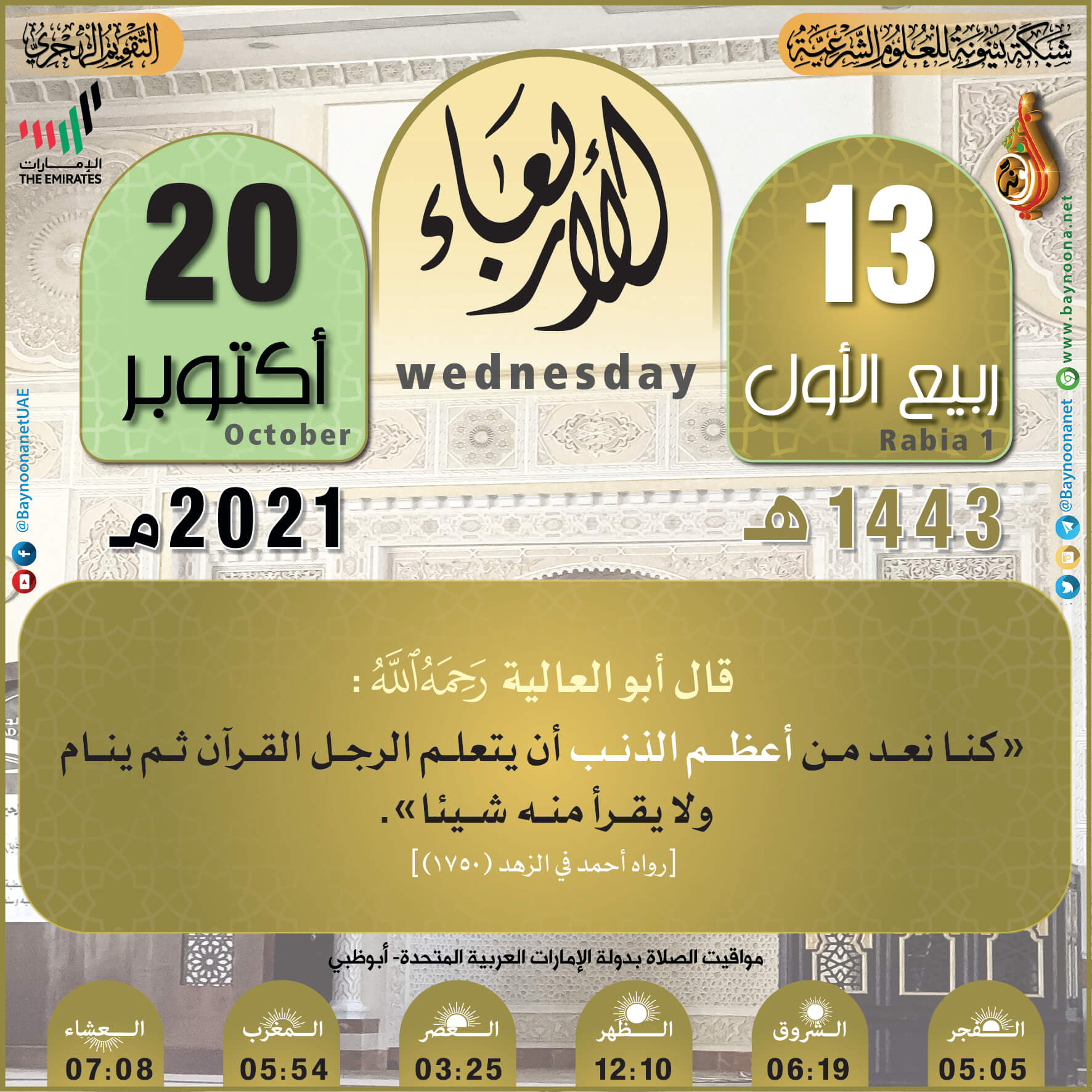 التقويم الهجري لعام ١٤٤٣ هـ - الأربعاء ١٣ ربيع الأول تاريخ الإضافة: الأربعاء, 20/10/2021 - 00:55 التصنيفات صنف البطاقة: عامة الشيخ: من إعداد شبكة بينونة سلسلة بطاقات: التقويم الهجري لعام ١٤٤٣هـ حمل السلسلة كاملة: التقويم الهجري لعام ١٤٤٣ هـ - شهر المحرم حمل السلسلة كاملة: التقويم الهجري لعام ١٤٤٣ هـ - شهر صفر حمل السلسلة كاملة: التقويم الهجري لعام ١٤٤٣ هـ - شهر ربيع الأول حمل السلسلة كاملة: التقويم الهجري لعام ١٤٤٣ هـ - شهر ربيع الثاني حمل السلسلة كاملة: التقويم الهجري لعام ١٤٤٣ هـ - شهر جمادى الأولى حمل السلسلة كاملة: التقويم الهجري لعام ١٤٤٣ هـ - شهر جمادى الآخرة حمل السلسلة كاملة: التقويم الهجري لعام ١٤٤٣ هـ - شهر رجب حمل السلسلة كاملة: التقويم الهجري لعام ١٤٤٣ هـ - شهر شعبان حمل السلسلة كاملة: التقويم الهجري لعام ١٤٤٣ هـ - شهر رمضان حمل السلسلة كاملة: التقويم الهجري لعام ١٤٤٣ هـ - شهر شوال حمل السلسلة كاملة: التقويم الهجري لعام ١٤٤٣ هـ - شهر ذو القعدة حمل السلسلة كاملة: التقويم الهجري لعام ١٤٤٣ هـ - شهر ذو الحجة