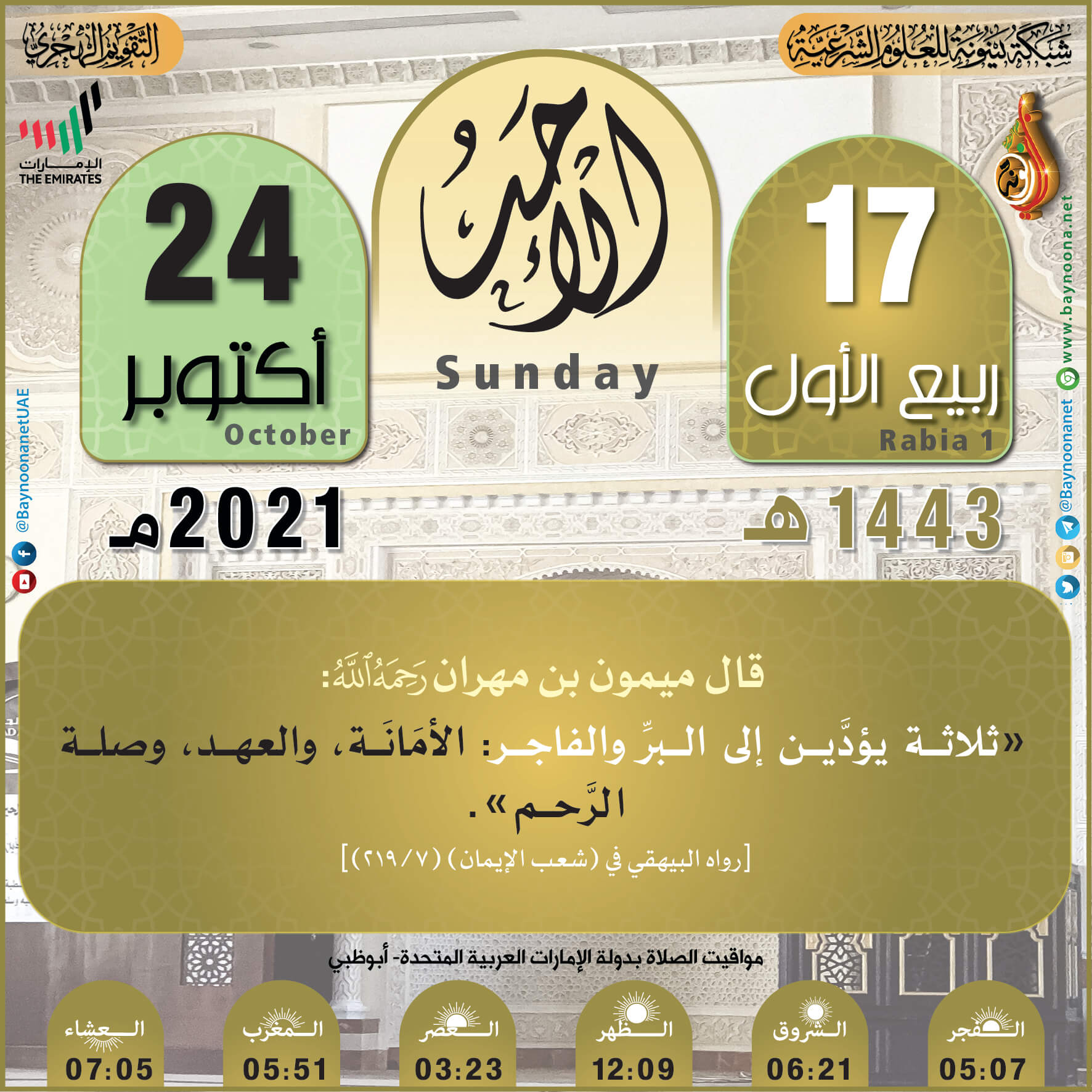 التقويم الهجري لعام ١٤٤٣ هـ - الأحد ١٧ ربيع الأول تاريخ الإضافة: الأحد, 24/10/2021 - 00:02 التصنيفات صنف البطاقة: عامة الشيخ: من إعداد شبكة بينونة سلسلة بطاقات: التقويم الهجري لعام ١٤٤٣هـ حمل السلسلة كاملة: التقويم الهجري لعام ١٤٤٣ هـ - شهر المحرم حمل السلسلة كاملة: التقويم الهجري لعام ١٤٤٣ هـ - شهر صفر حمل السلسلة كاملة: التقويم الهجري لعام ١٤٤٣ هـ - شهر ربيع الأول حمل السلسلة كاملة: التقويم الهجري لعام ١٤٤٣ هـ - شهر ربيع الثاني حمل السلسلة كاملة: التقويم الهجري لعام ١٤٤٣ هـ - شهر جمادى الأولى حمل السلسلة كاملة: التقويم الهجري لعام ١٤٤٣ هـ - شهر جمادى الآخرة حمل السلسلة كاملة: التقويم الهجري لعام ١٤٤٣ هـ - شهر رجب حمل السلسلة كاملة: التقويم الهجري لعام ١٤٤٣ هـ - شهر شعبان حمل السلسلة كاملة: التقويم الهجري لعام ١٤٤٣ هـ - شهر رمضان حمل السلسلة كاملة: التقويم الهجري لعام ١٤٤٣ هـ - شهر شوال حمل السلسلة كاملة: التقويم الهجري لعام ١٤٤٣ هـ - شهر ذو القعدة حمل السلسلة كاملة: التقويم الهجري لعام ١٤٤٣ هـ - شهر ذو الحجة