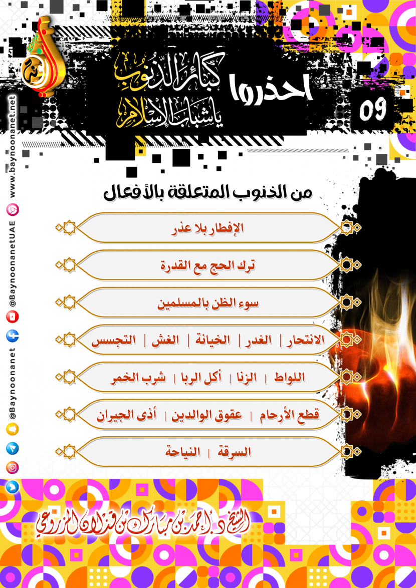 احذروا كبائر الذنوب يا شباب الإسلام (٠٩) تاريخ الإضافة: الأربعاء, 12/01/2022 - 13:53 التصنيفات صنف البطاقة: التحذير من المعاصي الشيخ: د. أحمد بن مبارك المزروعي سلسلة بطاقات: احذروا كبائر الذنوب يا شباب الإسلام حمل السلسلة كاملة: احذروا كبائر الذنوب يا شباب الإسلام