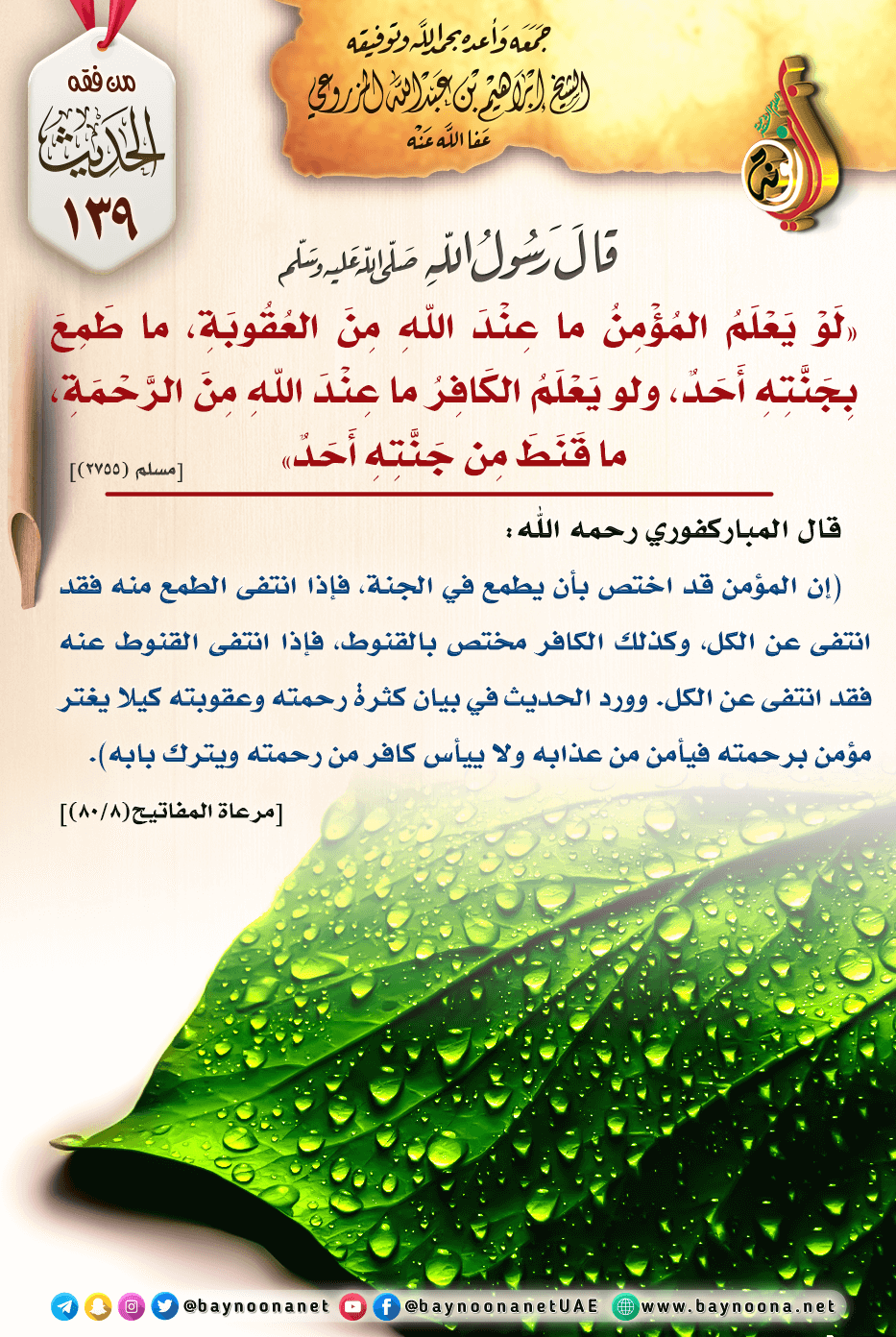 من فقه الحديث - (١٣٩) قال ﷺ: ( لو يعلم المؤمن ما عند الله من العقوبة ، ما طمع بجنته أحد ... ) تاريخ الإضافة: السبت, 15/01/2022 - 18:28 التصنيفات صنف البطاقة: إيمانيات الشيخ: إبراهيم بن عبد الله المزروعي سلسلة بطاقات: من فقه الحديث حمل السلسلة كاملة: من فقه الحديث (الجزء ١) حمل السلسلة كاملة: من فقه الحديث (الجزء ٢) حمل السلسلة كاملة: من فقه الحديث (الجزء ٣)