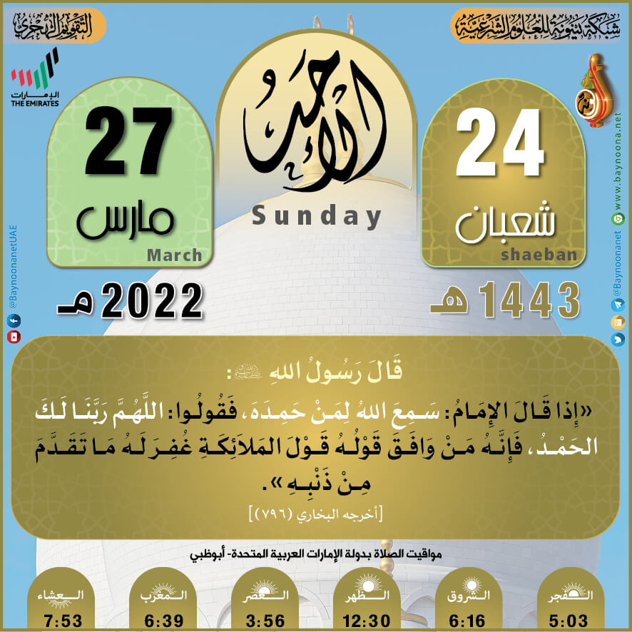 التقويم الهجري لعام ١٤٤٣ هـ - الأحد ٢٤ شعبان تاريخ الإضافة: السبت, 26/03/2022 - 22:22 التصنيفات صنف البطاقة: عامة الشيخ: من إعداد شبكة بينونة سلسلة بطاقات: التقويم الهجري لعام ١٤٤٣هـ حمل السلسلة كاملة: التقويم الهجري لعام ١٤٤٣ هـ - شهر المحرم حمل السلسلة كاملة: التقويم الهجري لعام ١٤٤٣ هـ - شهر صفر حمل السلسلة كاملة: التقويم الهجري لعام ١٤٤٣ هـ - شهر ربيع الأول حمل السلسلة كاملة: التقويم الهجري لعام ١٤٤٣ هـ - شهر ربيع الثاني حمل السلسلة كاملة: التقويم الهجري لعام ١٤٤٣ هـ - شهر جمادى الأولى حمل السلسلة كاملة: التقويم الهجري لعام ١٤٤٣ هـ - شهر جمادى الآخرة حمل السلسلة كاملة: التقويم الهجري لعام ١٤٤٣ هـ - شهر رجب حمل السلسلة كاملة: التقويم الهجري لعام ١٤٤٣ هـ - شهر شعبان حمل السلسلة كاملة: التقويم الهجري لعام ١٤٤٣ هـ - شهر رمضان حمل السلسلة كاملة: التقويم الهجري لعام ١٤٤٣ هـ - شهر شوال حمل السلسلة كاملة: التقويم الهجري لعام ١٤٤٣ هـ - شهر ذو القعدة حمل السلسلة كاملة: التقويم الهجري لعام ١٤٤٣ هـ - شهر ذو الحجة