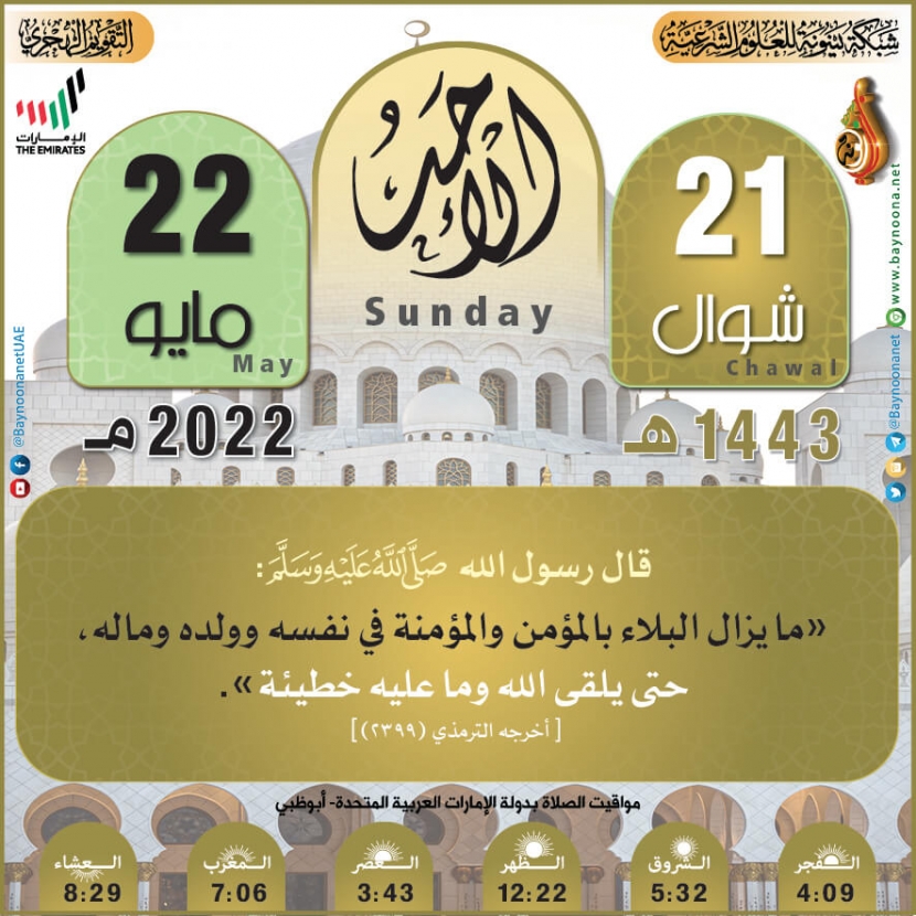 التقويم الهجري لعام ١٤٤٣ هـ - الأحد ٢١ شوال تاريخ الإضافة: السبت, 21/05/2022 - 22:38 التصنيفات صنف البطاقة: عامة الشيخ: من إعداد شبكة بينونة سلسلة بطاقات: التقويم الهجري لعام ١٤٤٣هـ حمل السلسلة كاملة: التقويم الهجري لعام ١٤٤٣ هـ - شهر المحرم حمل السلسلة كاملة: التقويم الهجري لعام ١٤٤٣ هـ - شهر صفر حمل السلسلة كاملة: التقويم الهجري لعام ١٤٤٣ هـ - شهر ربيع الأول حمل السلسلة كاملة: التقويم الهجري لعام ١٤٤٣ هـ - شهر ربيع الثاني حمل السلسلة كاملة: التقويم الهجري لعام ١٤٤٣ هـ - شهر جمادى الأولى حمل السلسلة كاملة: التقويم الهجري لعام ١٤٤٣ هـ - شهر جمادى الآخرة حمل السلسلة كاملة: التقويم الهجري لعام ١٤٤٣ هـ - شهر رجب حمل السلسلة كاملة: التقويم الهجري لعام ١٤٤٣ هـ - شهر شعبان حمل السلسلة كاملة: التقويم الهجري لعام ١٤٤٣ هـ - شهر رمضان حمل السلسلة كاملة: التقويم الهجري لعام ١٤٤٣ هـ - شهر شوال حمل السلسلة كاملة: التقويم الهجري لعام ١٤٤٣ هـ - شهر ذو القعدة حمل السلسلة كاملة: التقويم الهجري لعام ١٤٤٣ هـ - شهر ذو الحجة